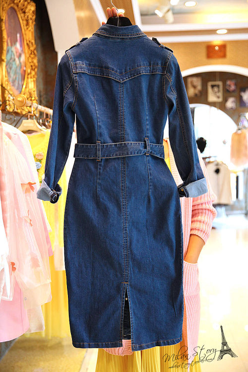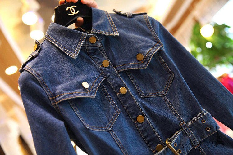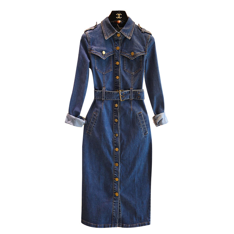 修身显瘦牛仔连衣裙长袖女2025春秋新款收腰包臀长款单排扣牛仔裙