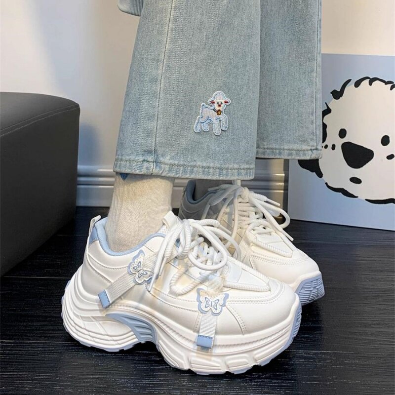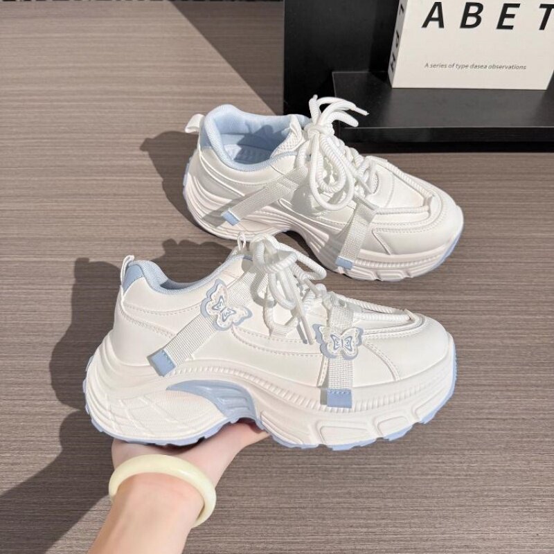 女童厚底老爹鞋奶蓝撞色2026春款中大童女孩运动鞋嫩fufu潮鞋爆款