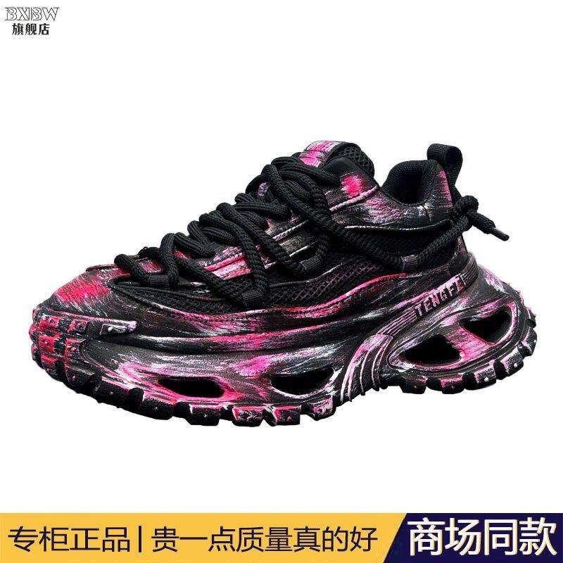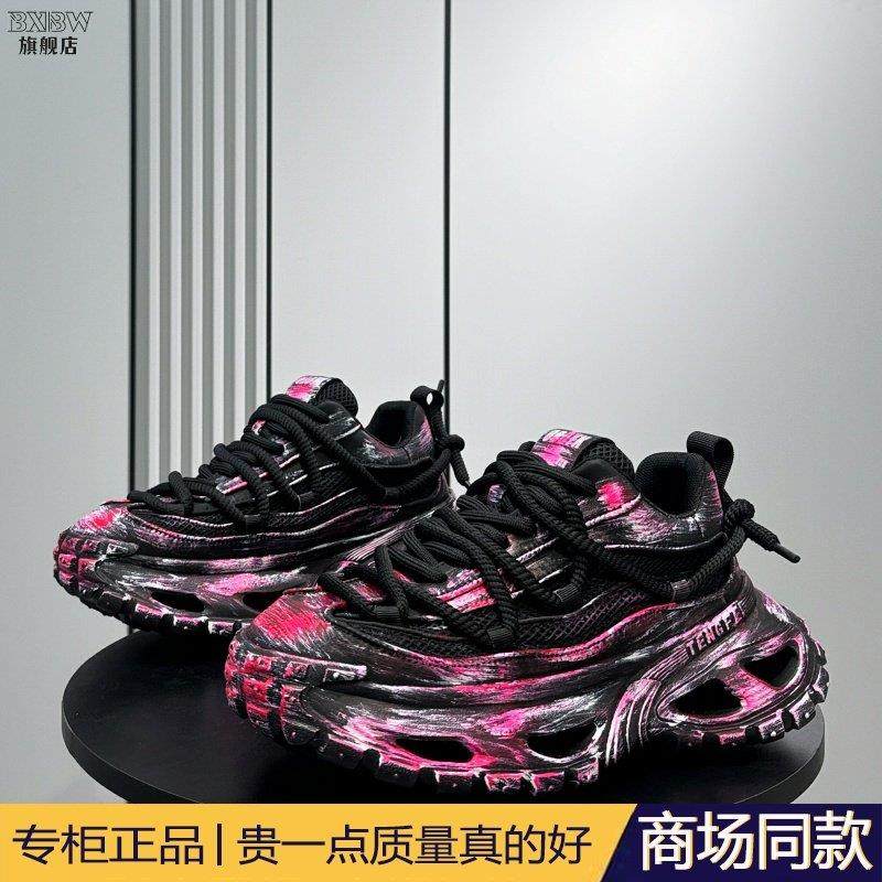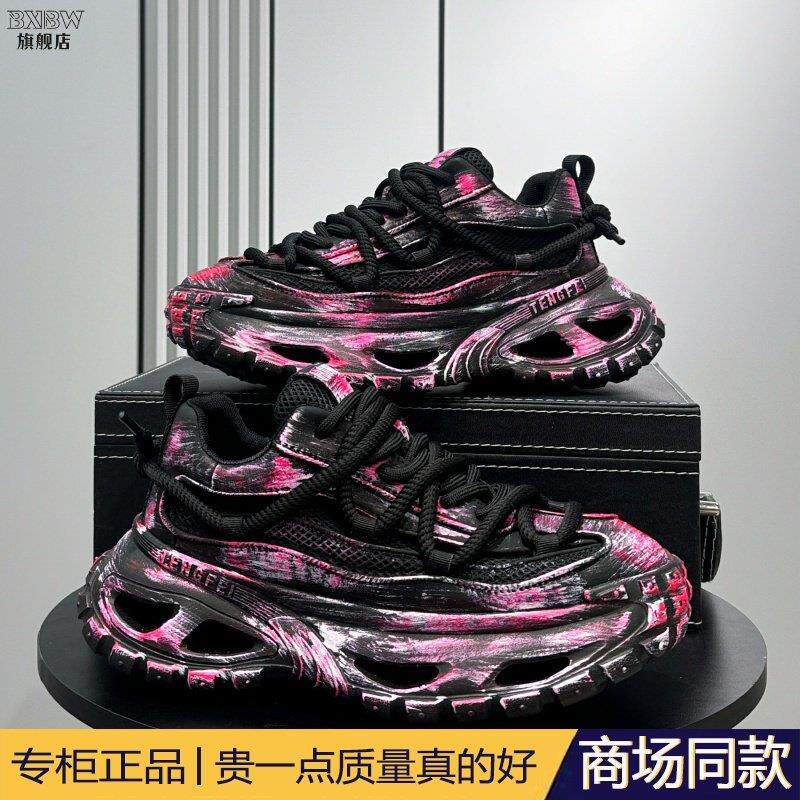 高端男鞋2025休闲鞋夏季网面透气厚底内增高运动鞋做旧擦色老爹鞋