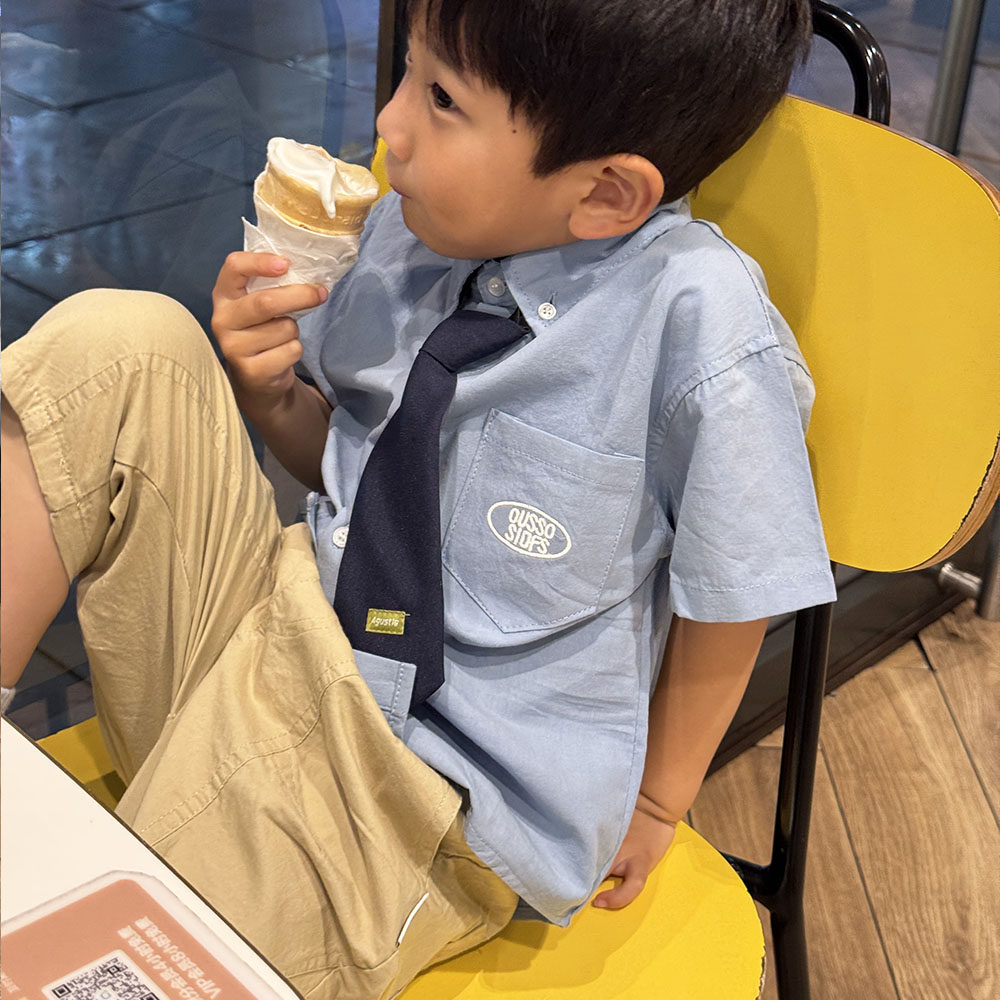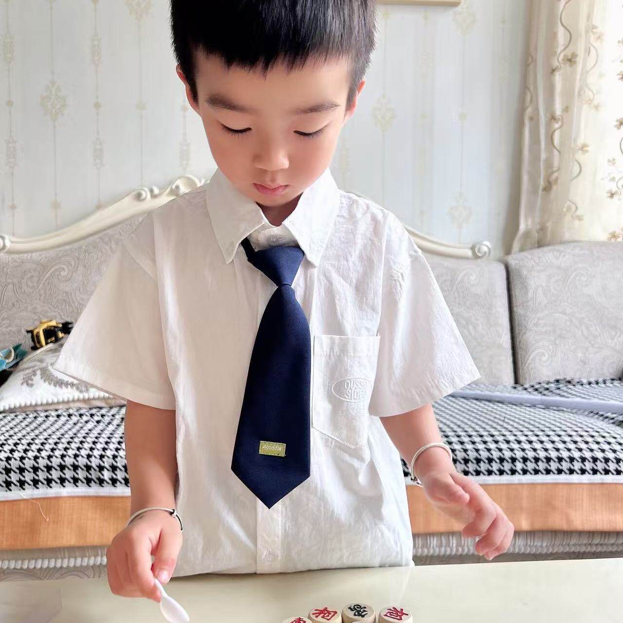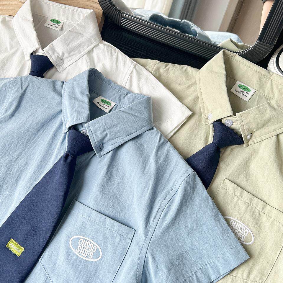男童学院风衬衣2026夏季儿童领带短袖衬衫男女薄款宝宝洋气白上衣