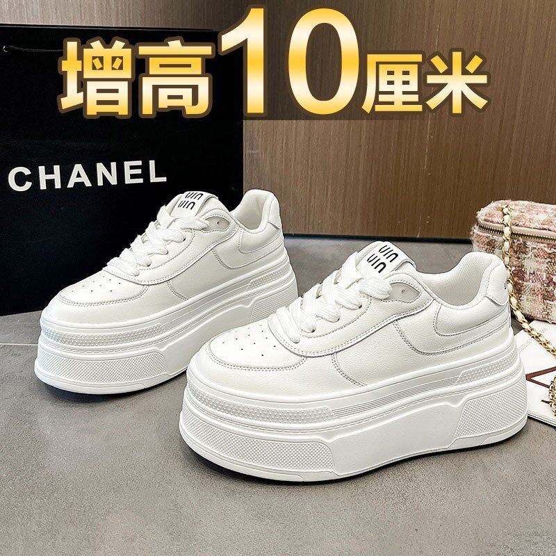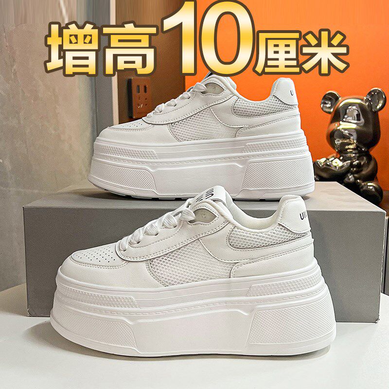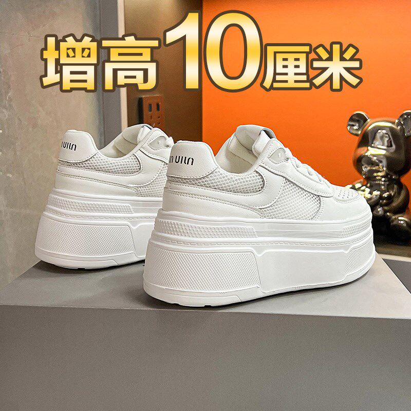 小个子厚底松糕鞋女2024今年流行网面新款内增高小白鞋配裙子板鞋