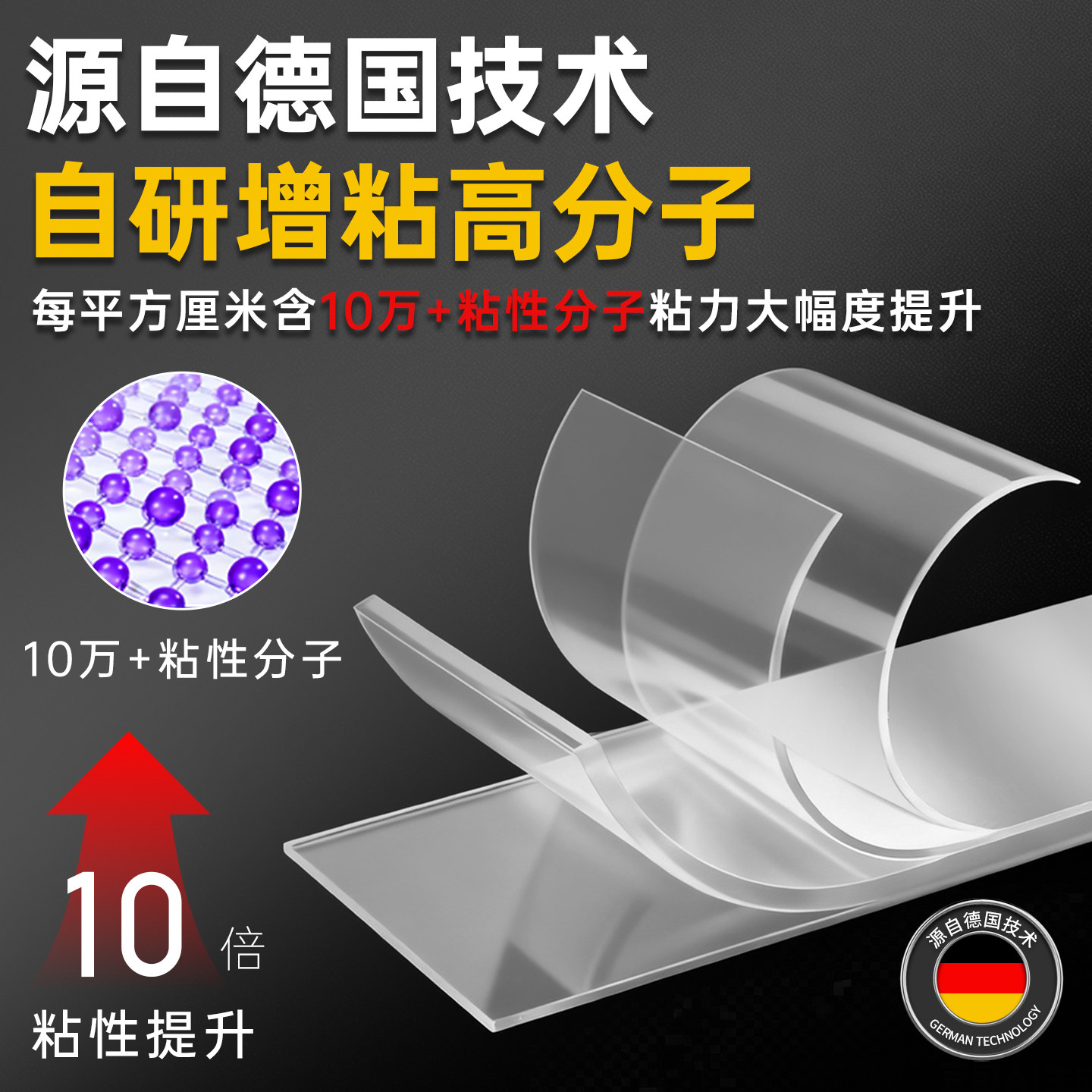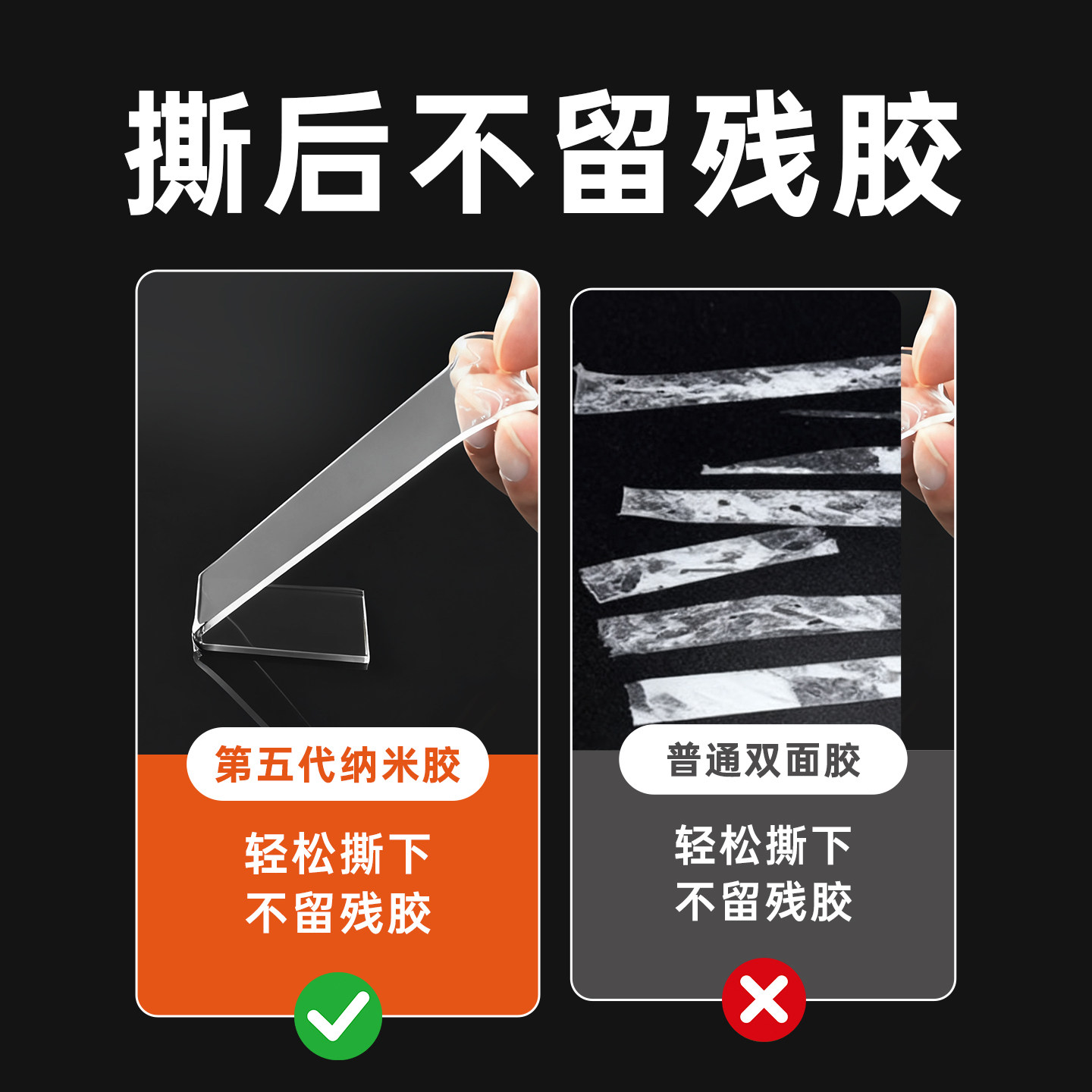 无甲醛纳米双面胶高粘度墙面专用强力无痕双面胶排插固定贴透明胶魔力粘胶贴片车用可水洗防水胶带不留胶胶布