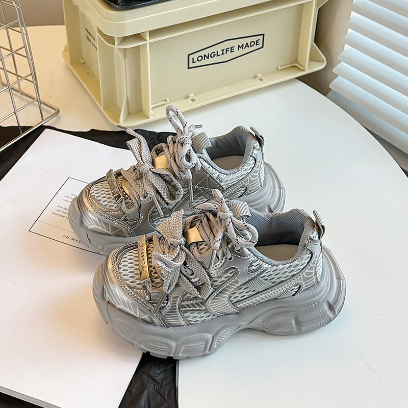儿童老爹鞋鞋带款女童鞋子厚底男童运动鞋网面透气春秋宝宝休闲鞋