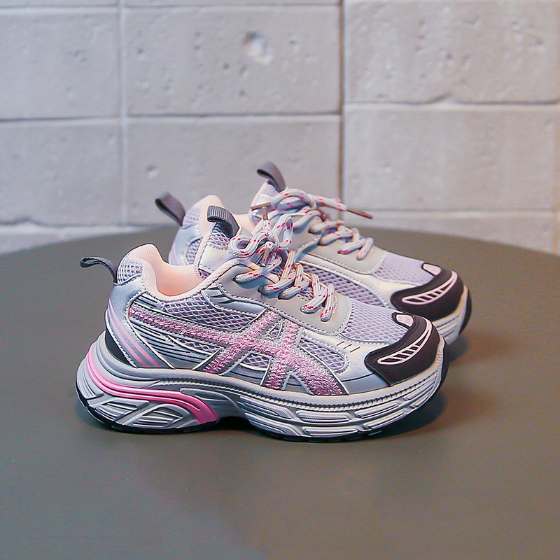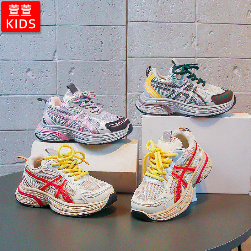 儿童鞋子透气网面女童跑步鞋春秋男童运动鞋软底女童鞋系鞋带春季