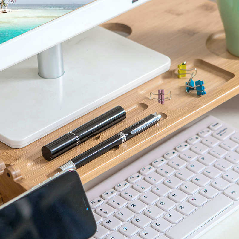 楠竹电脑显示器增高架子办公室桌面屏收纳垫高置物架支架台式底座