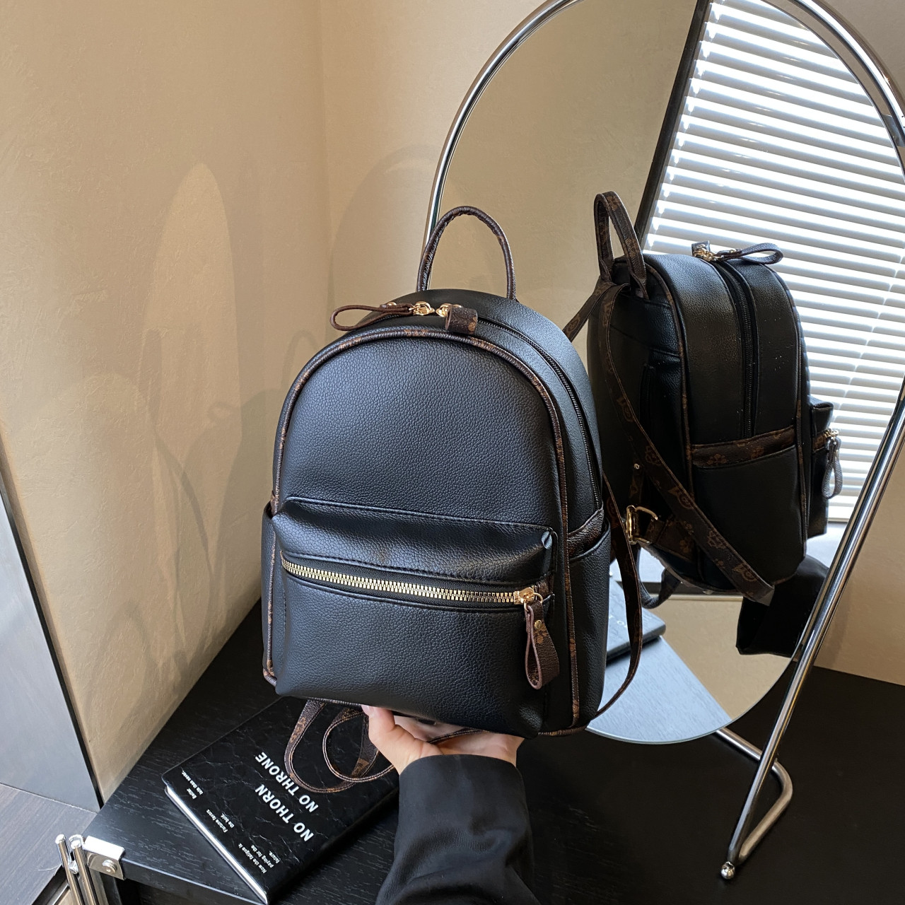 复古黑色双肩包女2025新款书包时尚简约女士背包轻便旅行通勤包包