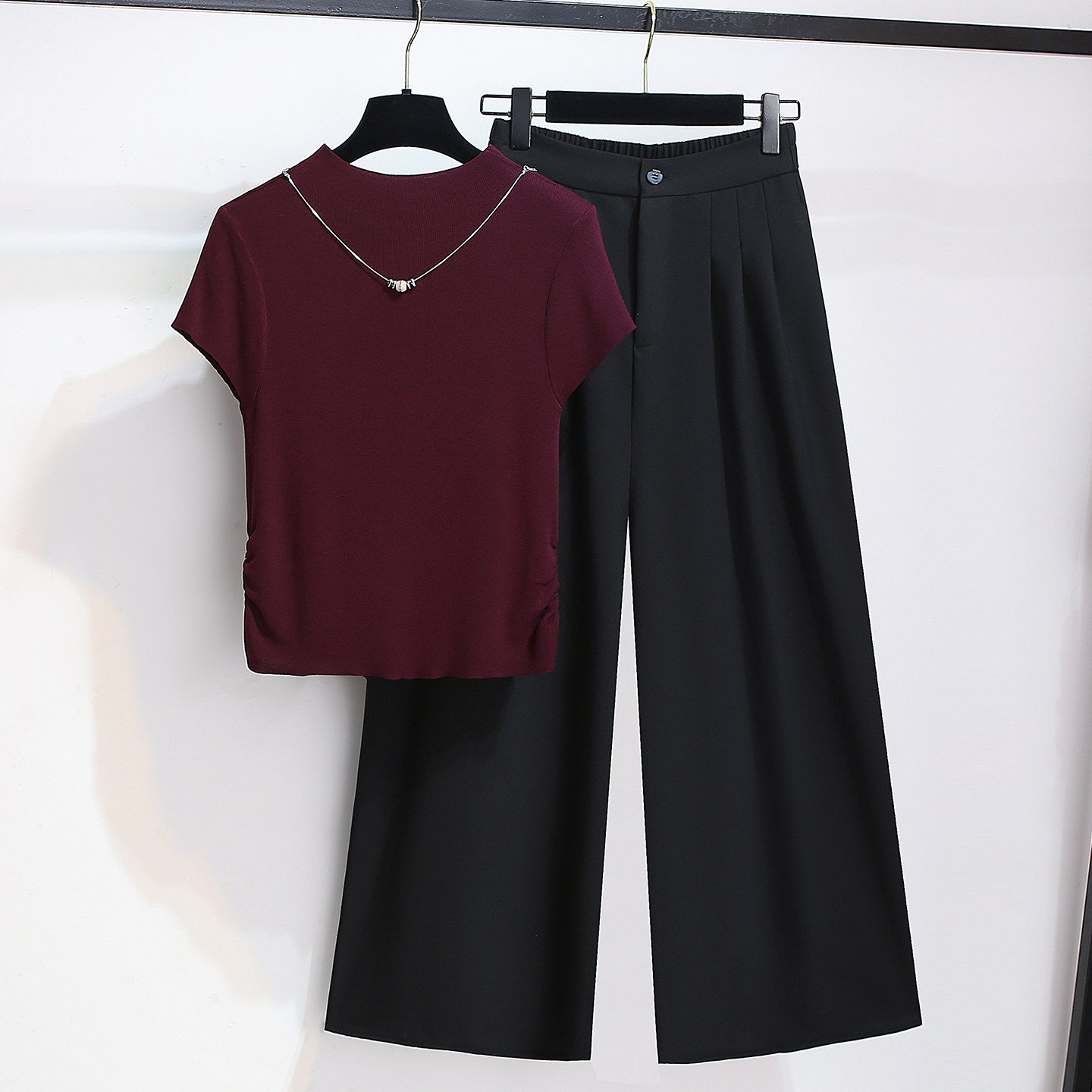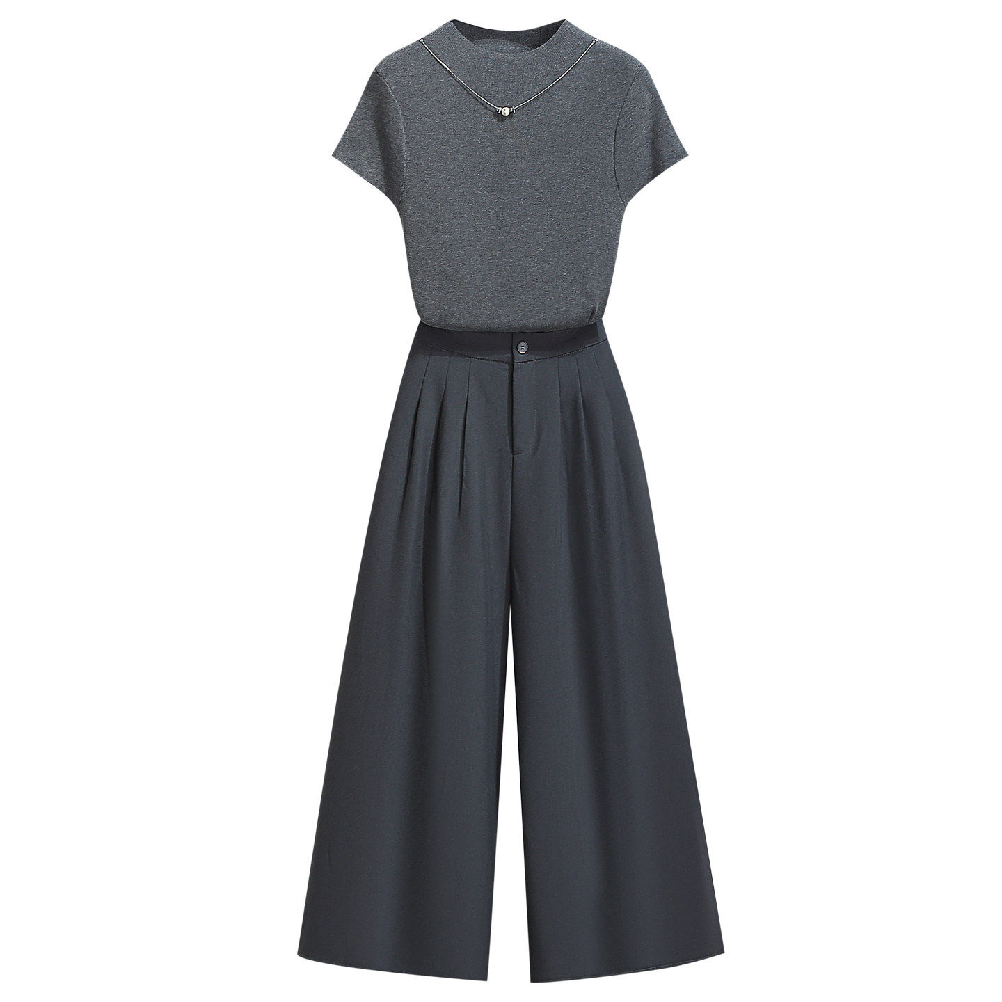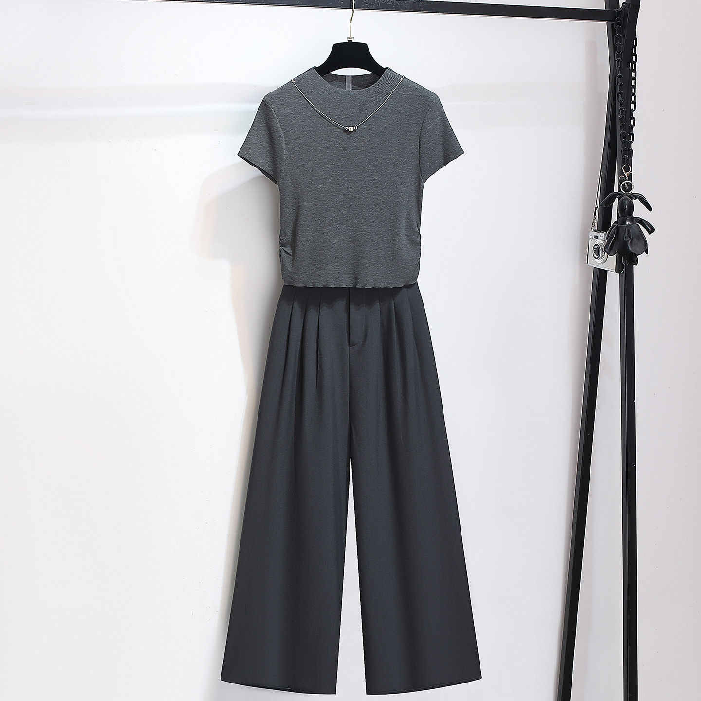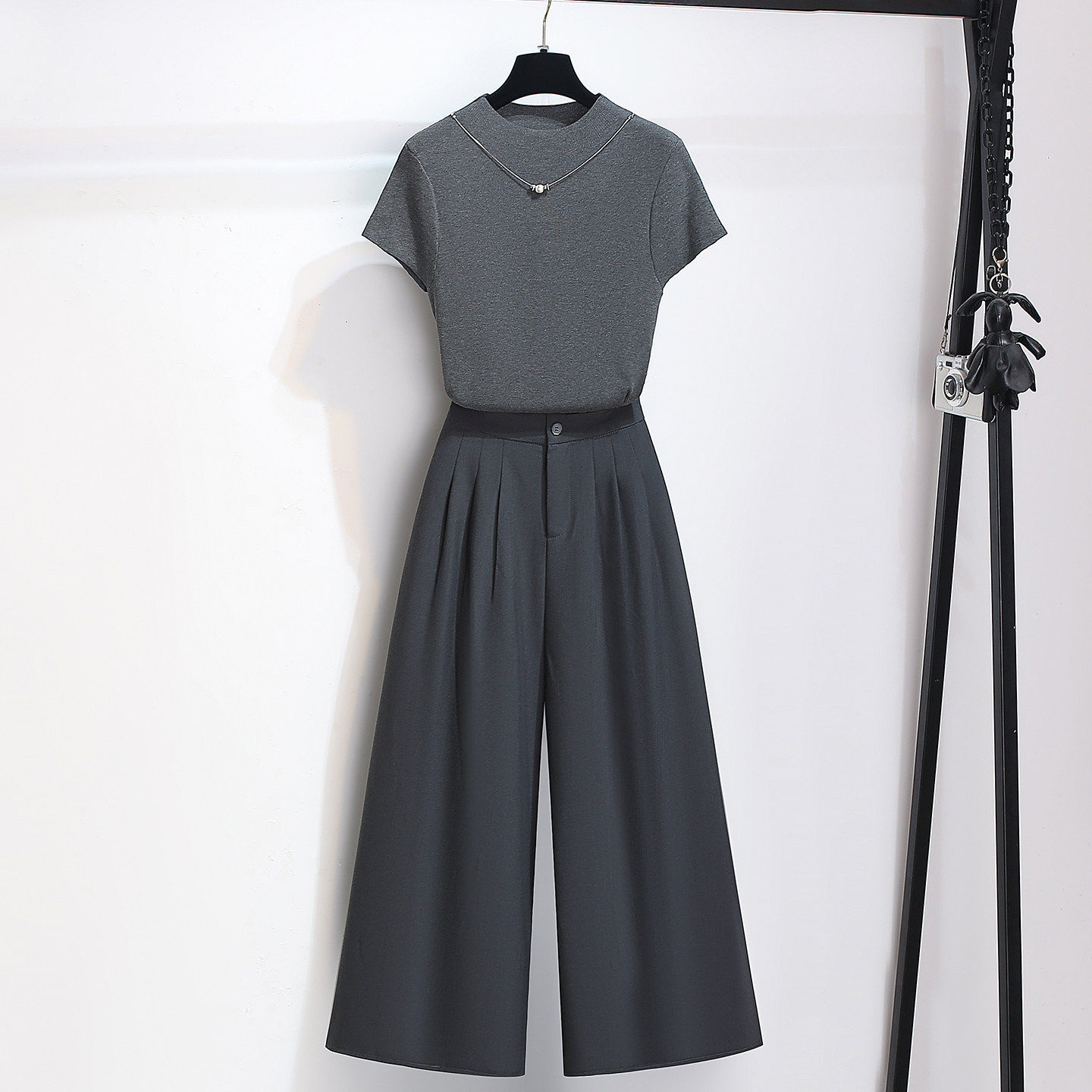 针织短袖t恤上衣阔腿裤子女夏2026早春新款今年流行爆款两件套装