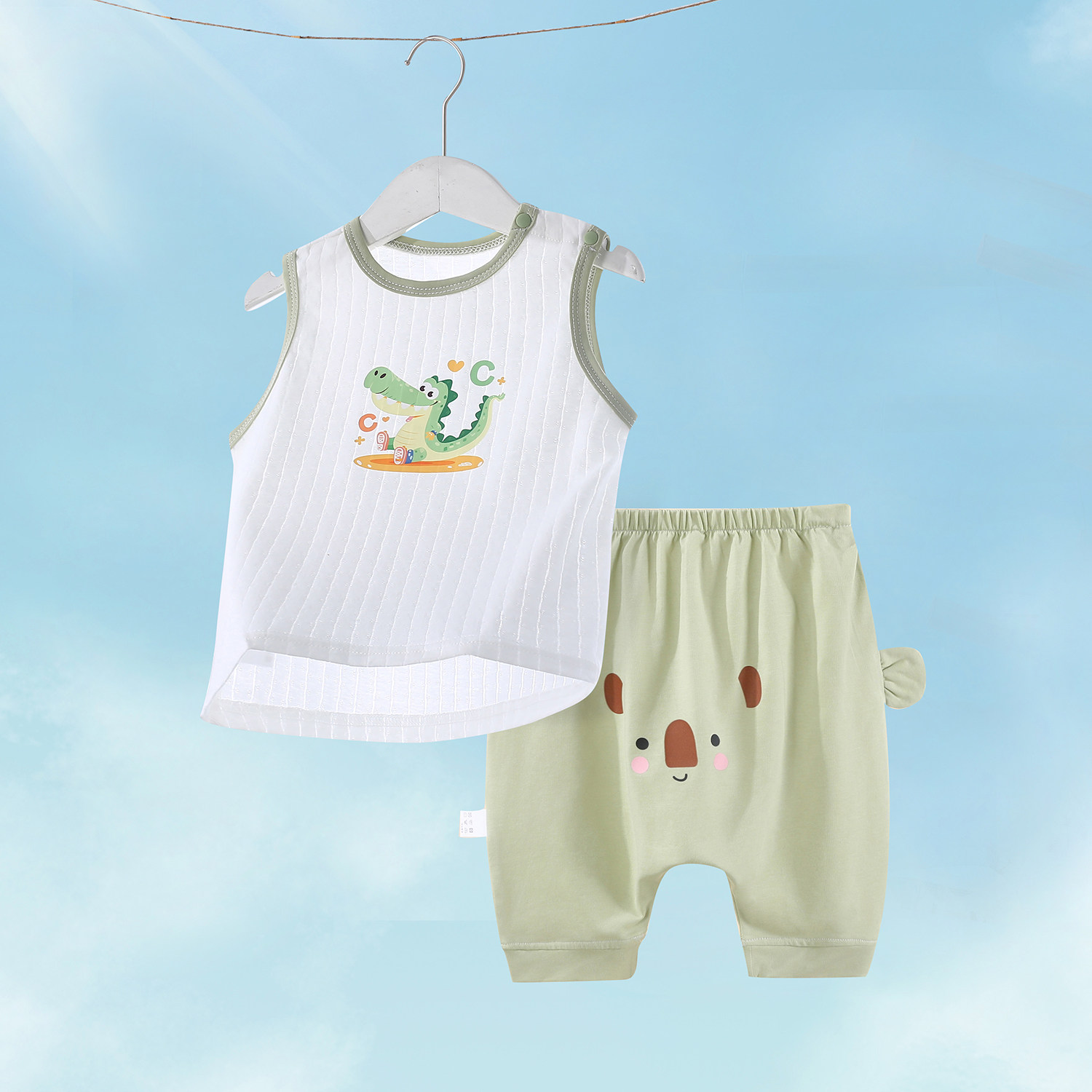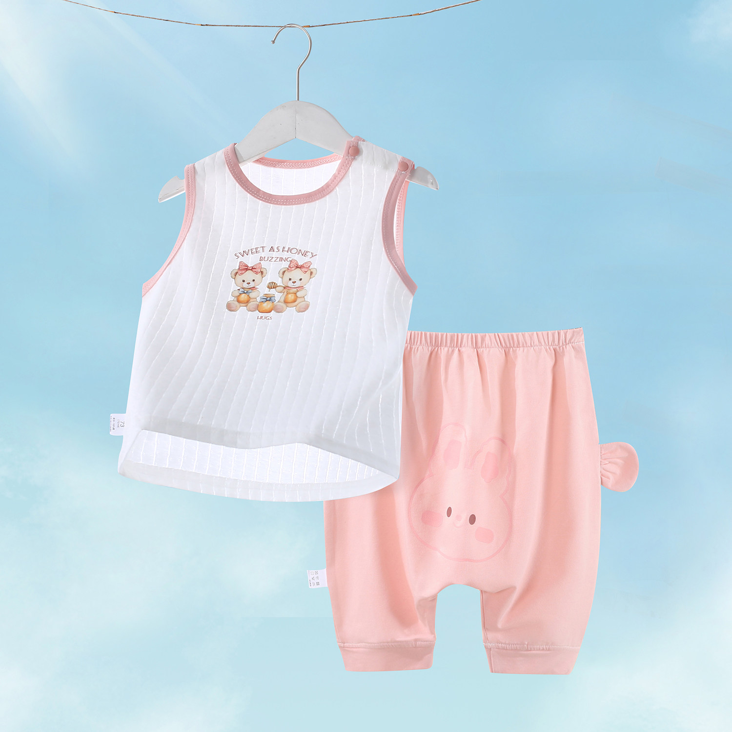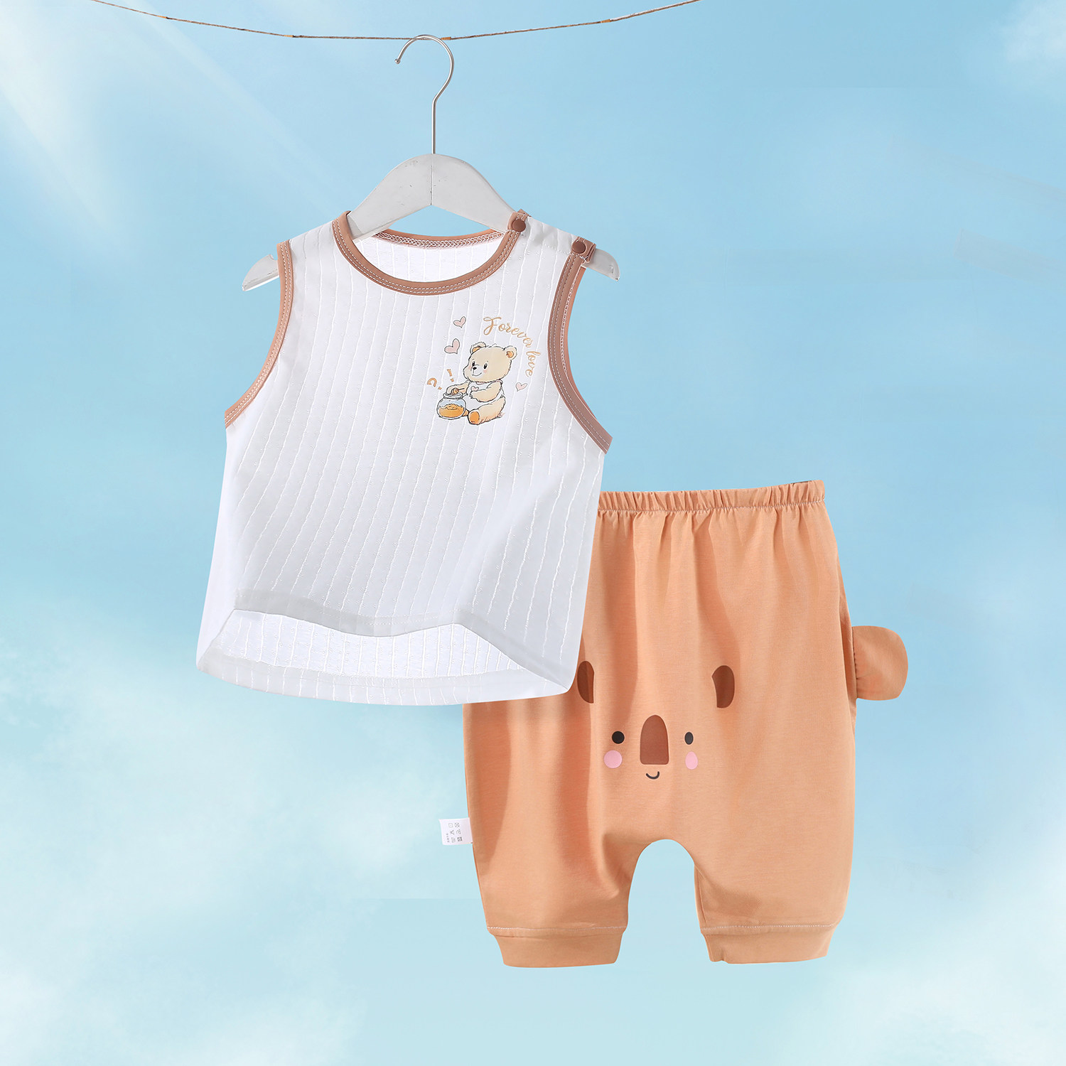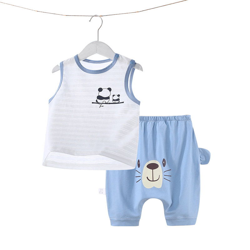 婴儿套装夏季薄款背心纯棉无袖大屁屁裤子男小童分体衣服女童夏装