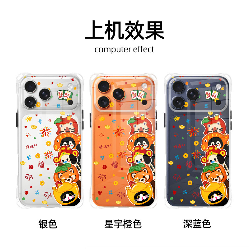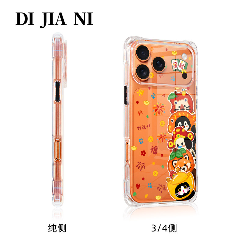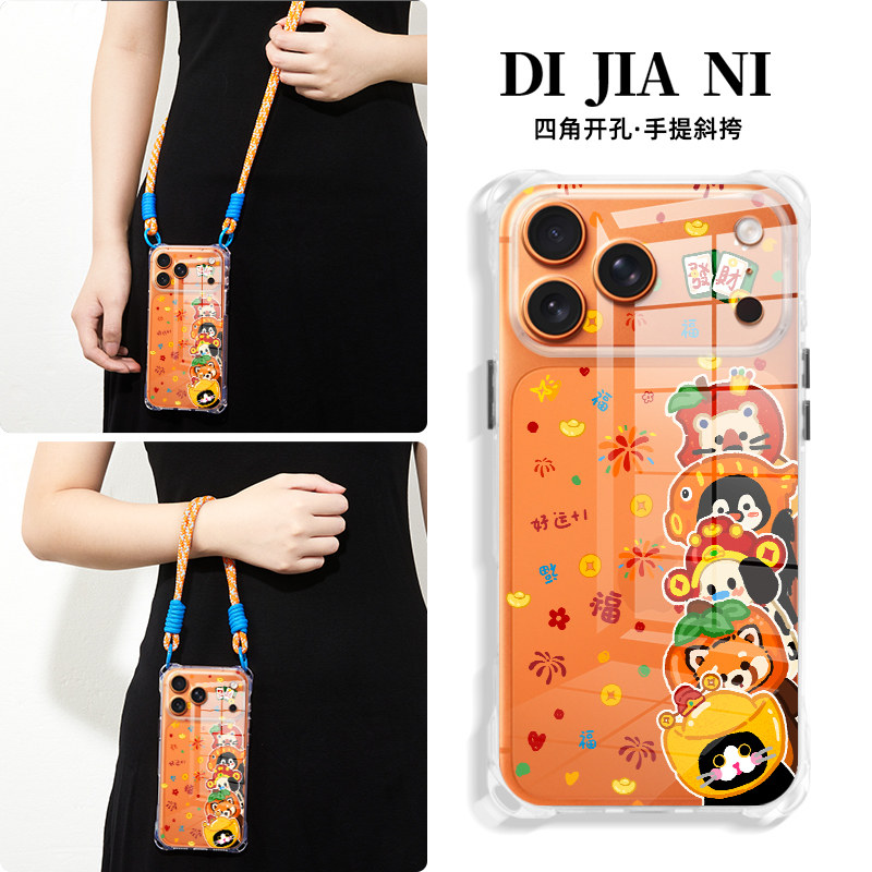 新年款可爱头套家族适用iPhone17pro手机壳原创苹果16promax透明15pm喜庆14手腕带挂绳斜挎13防摔12可爱女款