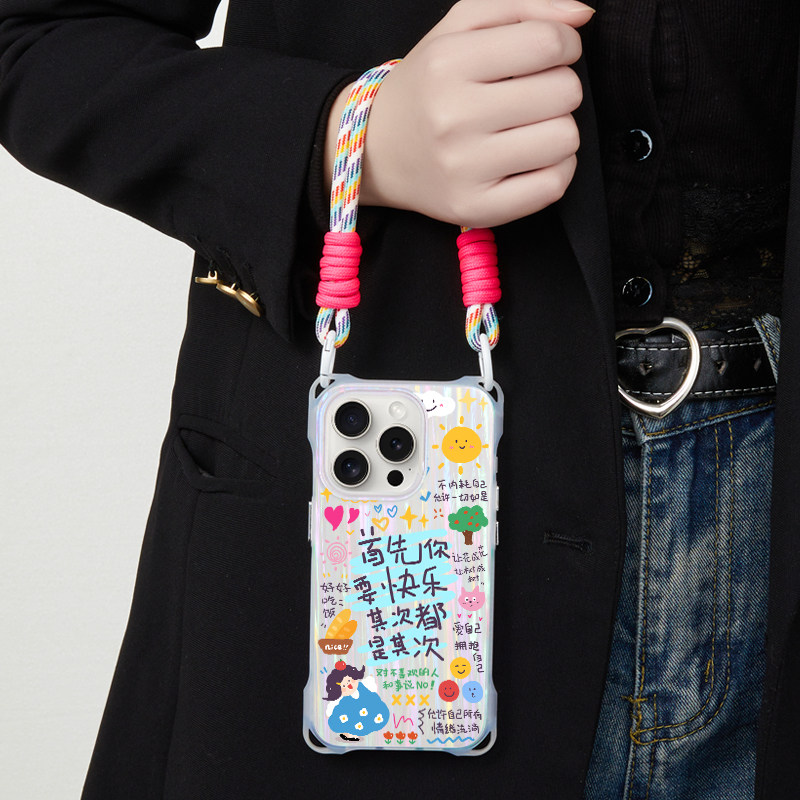 适用华为p70苹果16promax磁吸手机壳创意潮流ins风iphone15pro可手提腕带14pm挂绳背带17斜挎13潮流小众12
