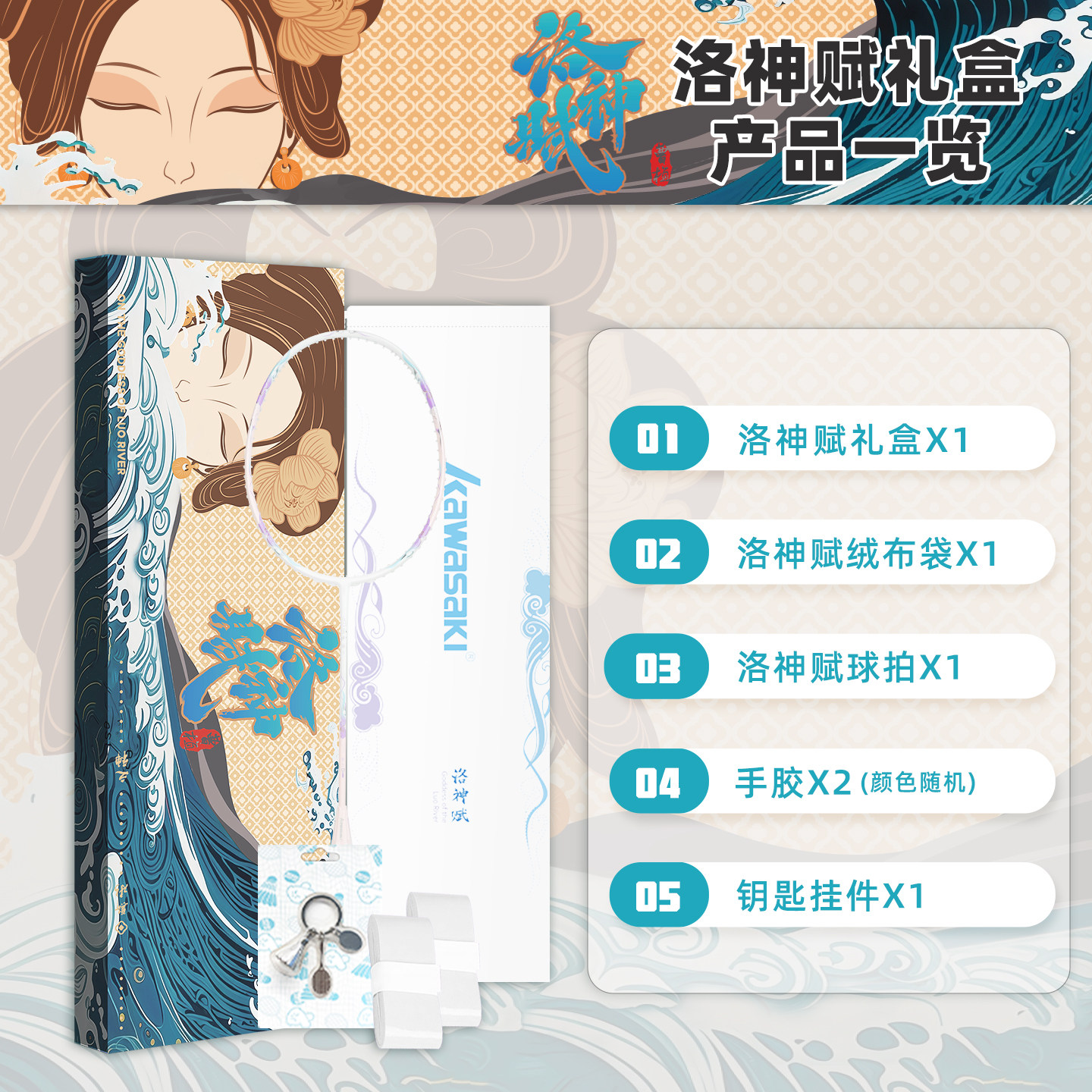 川崎洛神赋羽毛球拍国风礼盒全碳素男女训练进攻型单拍学生成人拍