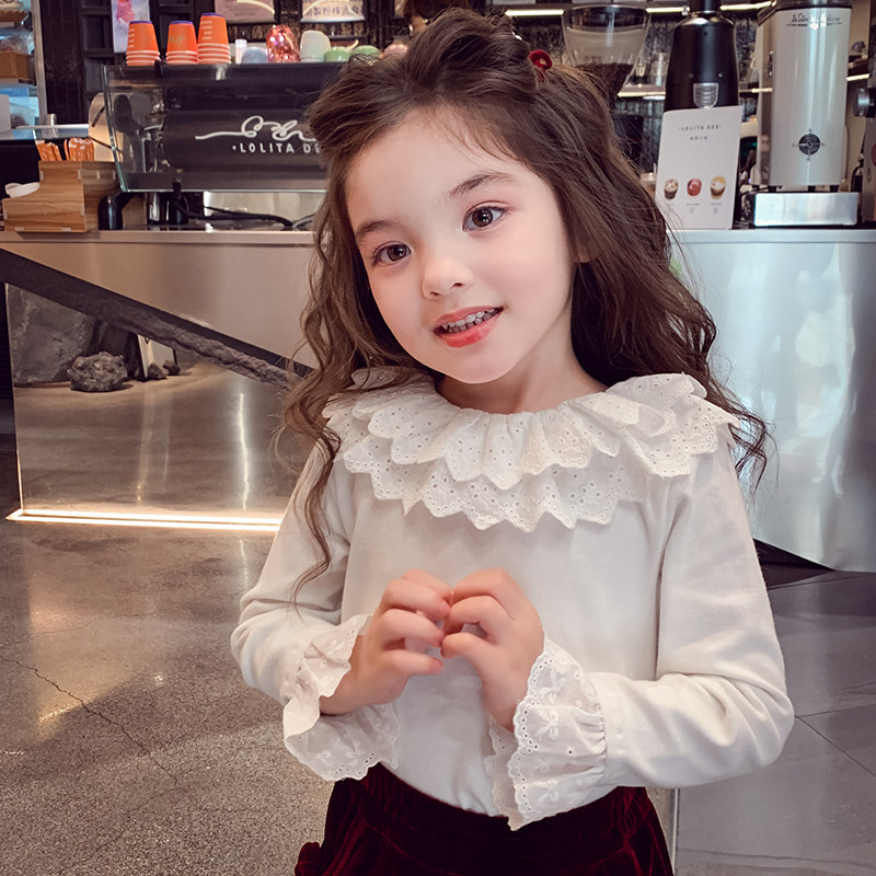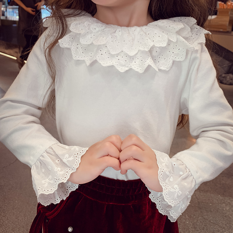 女童打底衫春装2026新款洋气儿童花边娃娃衫小女孩内搭白色上衣