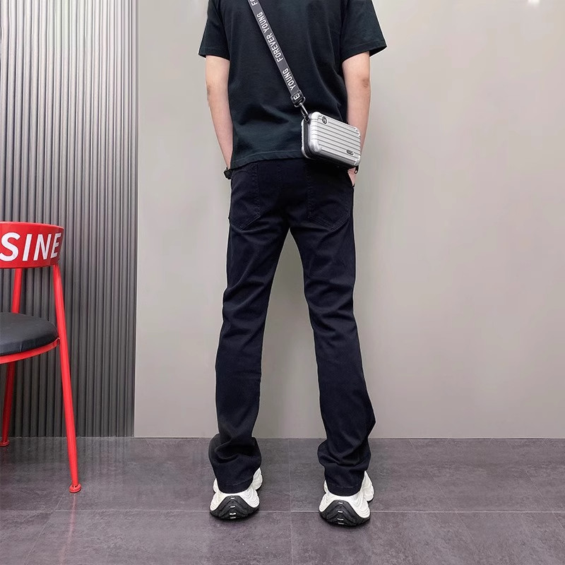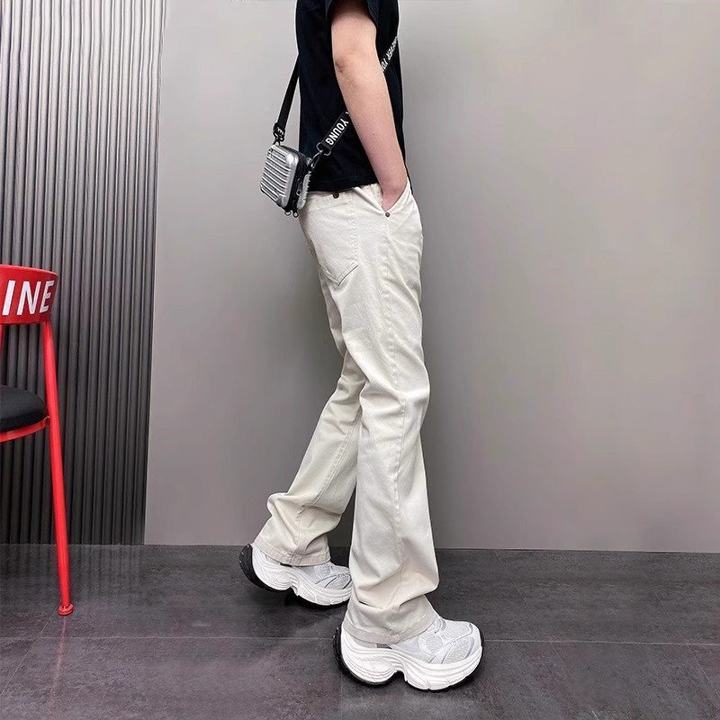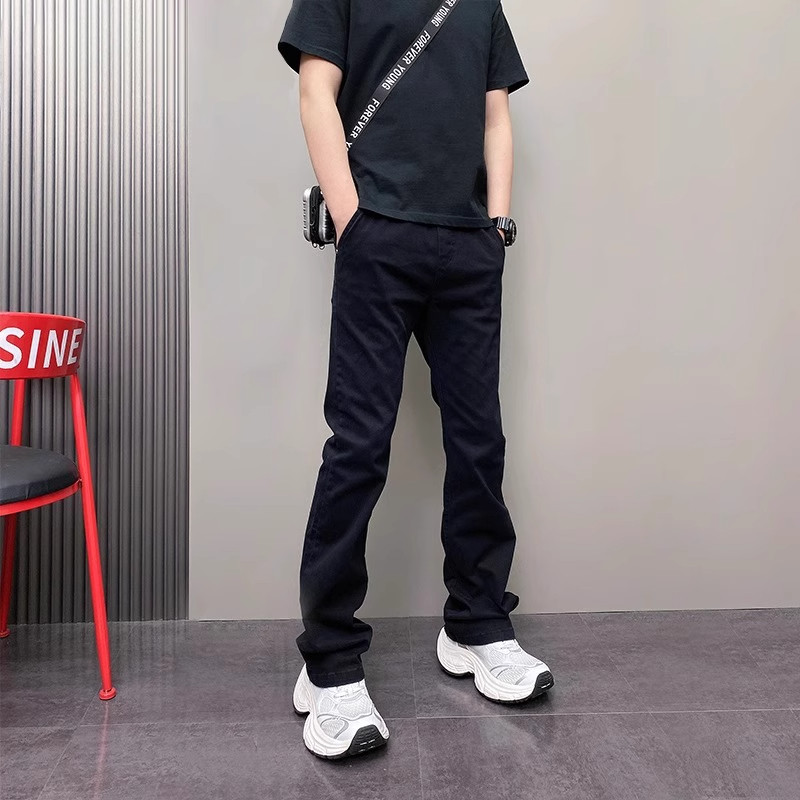 潮牌微喇牛仔裤男士2025新款夏季薄款纯色男裤直筒休闲裤子男款