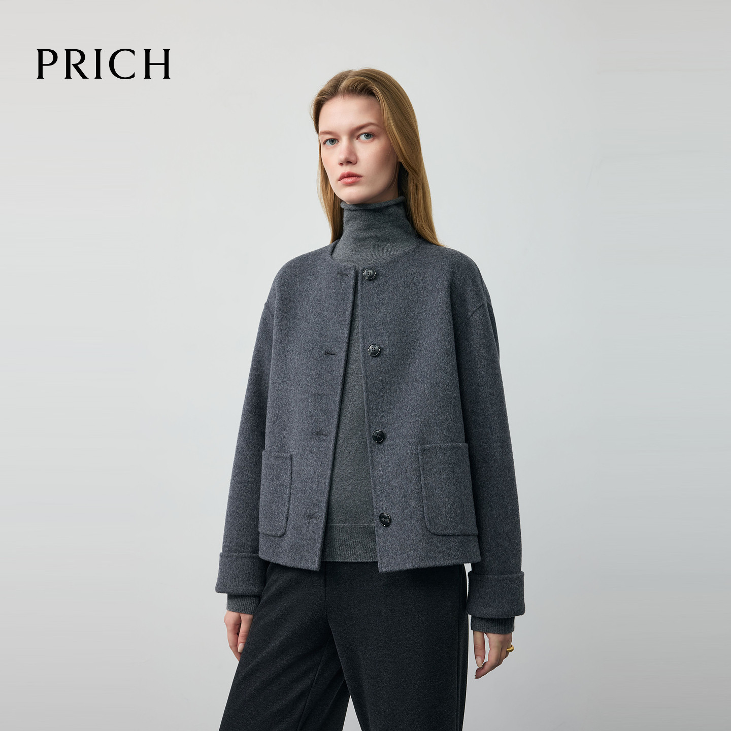 【100%绵羊毛】PRICH知性双面毛呢大衣冬季短款外套女