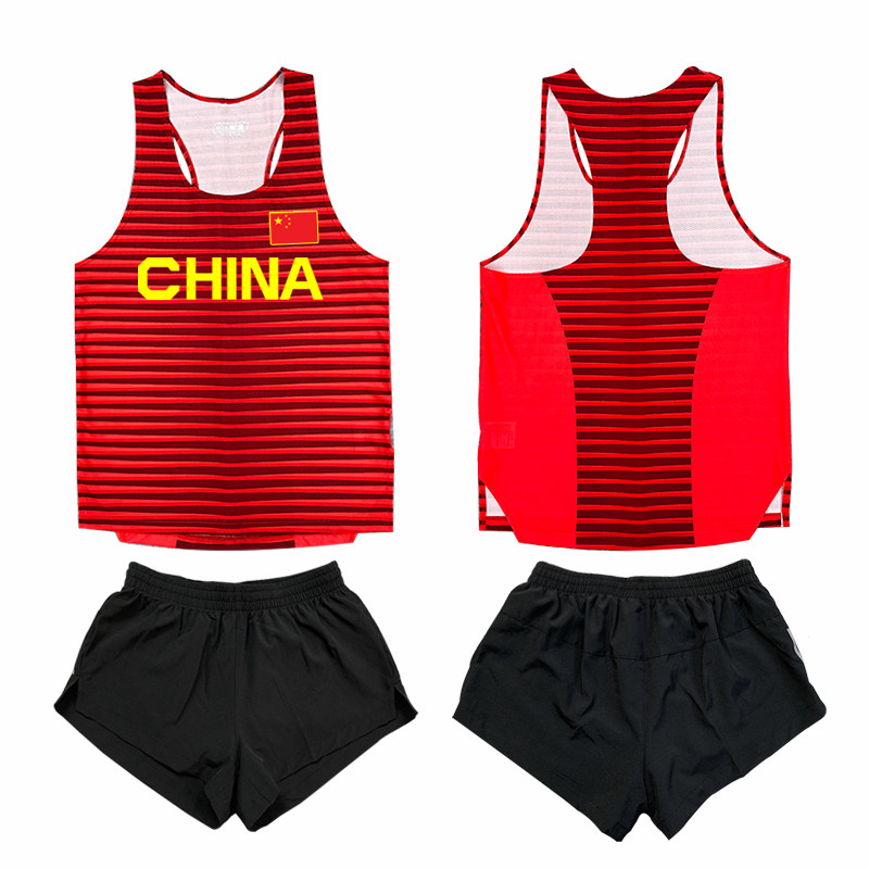 中国队田径服套装男女体育生训练服马拉松运动服跑步背心比赛服