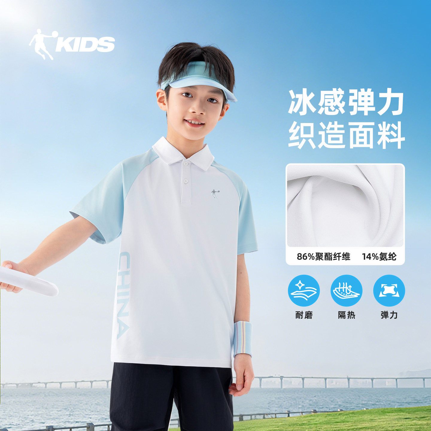 乔丹童装男童短袖polo衫2026夏季新款儿童速干T恤大童运动翻领短t