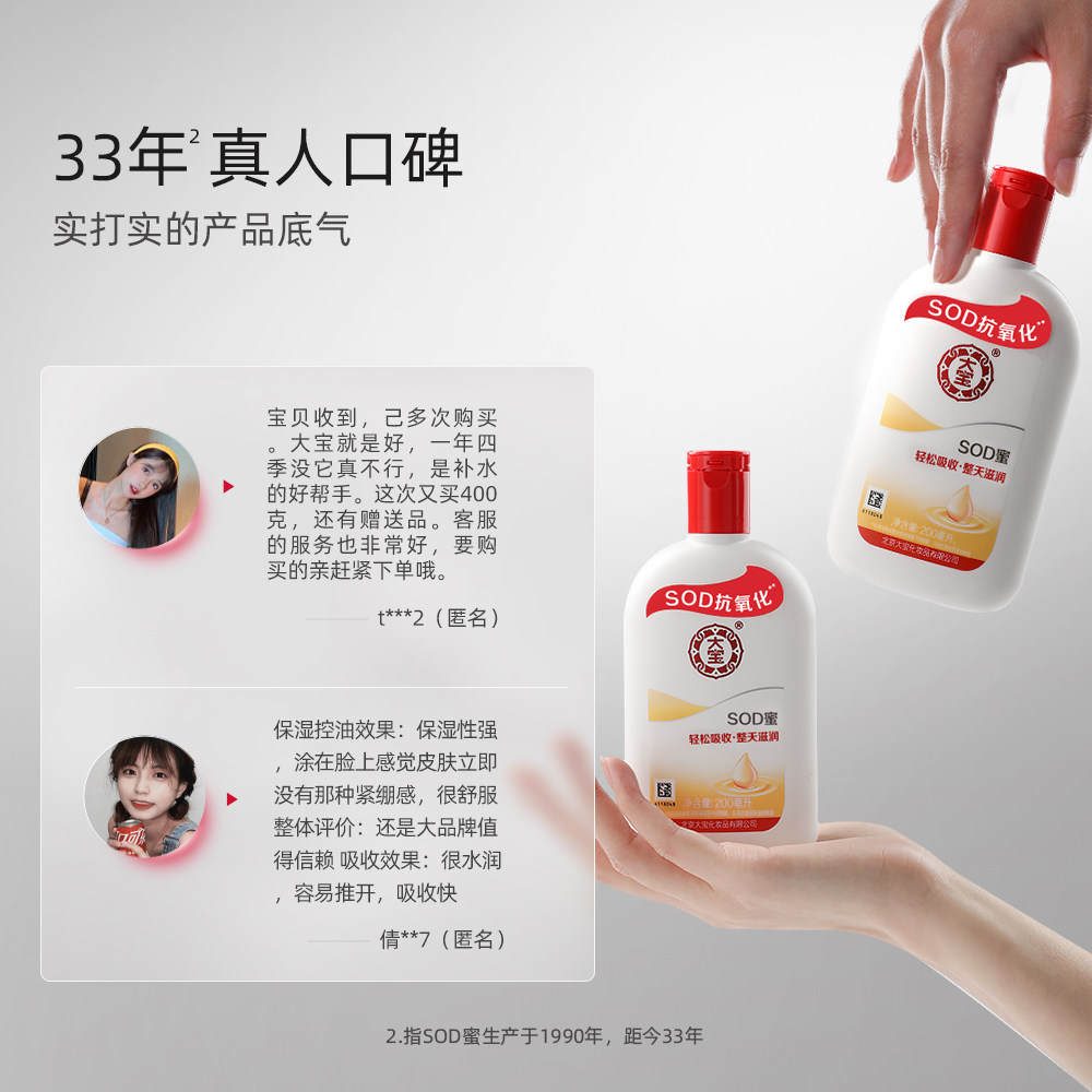 大宝SOD蜜2瓶装保湿滋润面霜女男士护肤乳液官方旗舰店官网正品