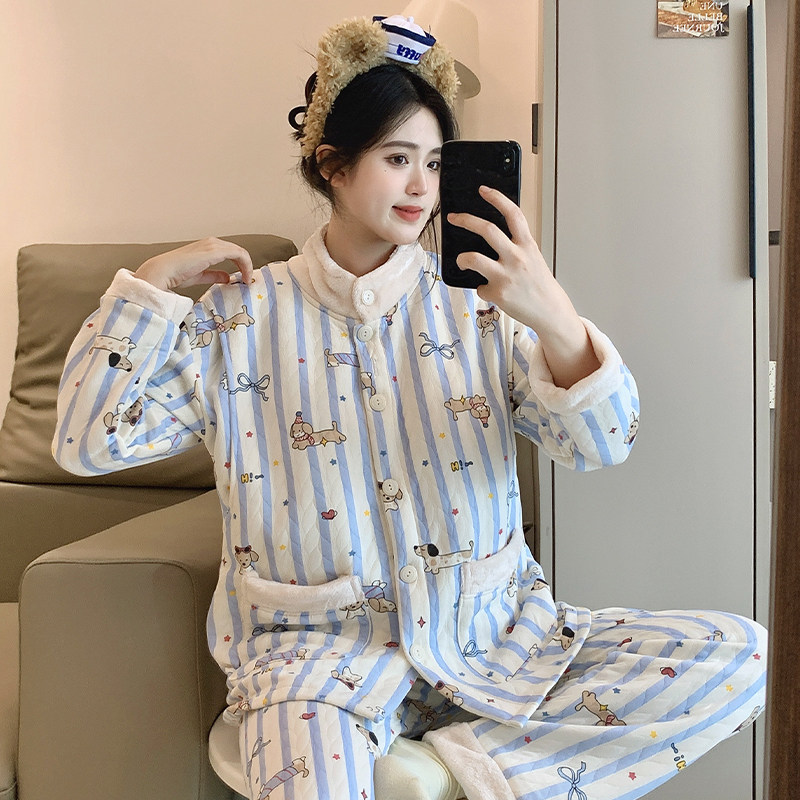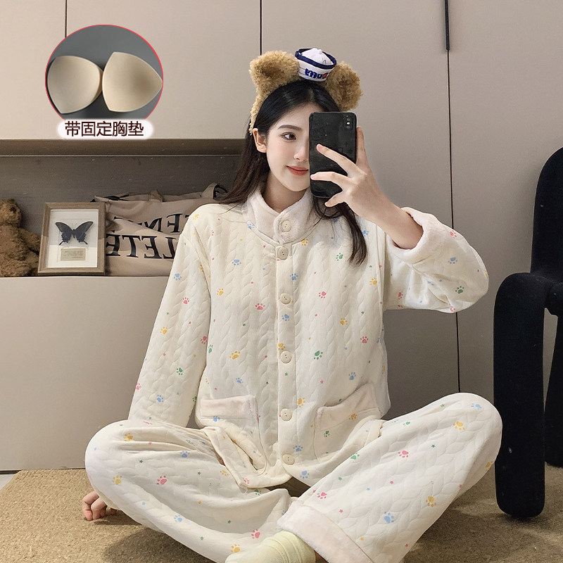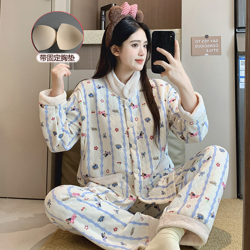 春秋冬季加厚保暖产后喂奶哺乳空气棉带胸垫月子服孕妇睡衣女纯棉