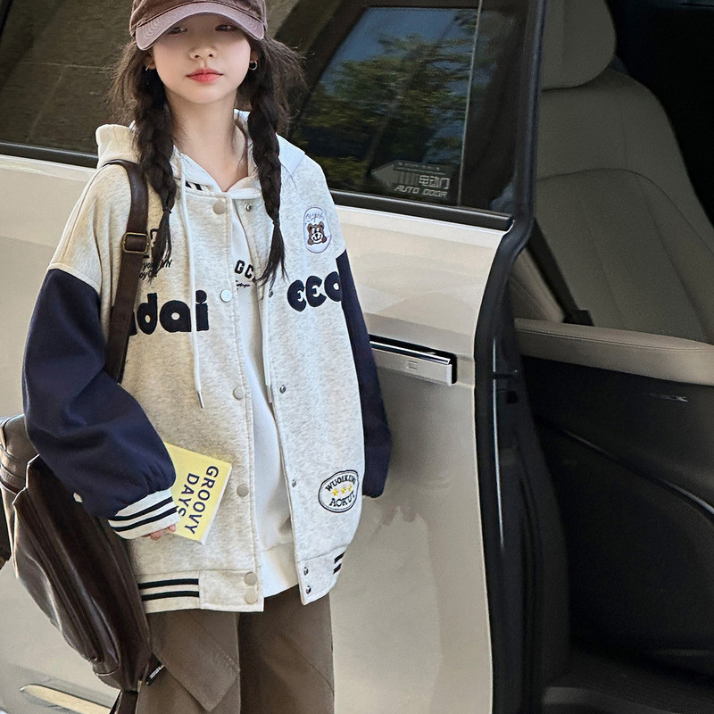女童棒球服春装新款2026儿童洋气刺绣休闲外套女大童春秋时髦衣服