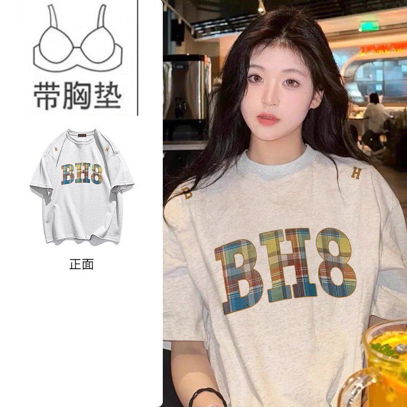 带胸垫短袖睡衣女款夏季纯棉韩版可爱单件上衣宽松Tt恤大码家居服