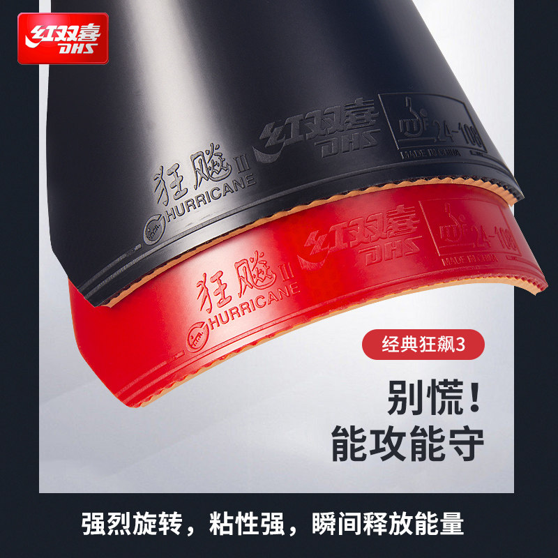 红双喜狂飙3乒乓球胶皮狂飚三粘性球拍反胶套胶普狂三狂3专业dhs