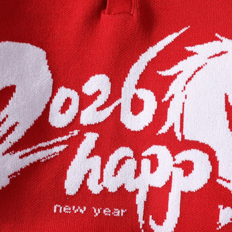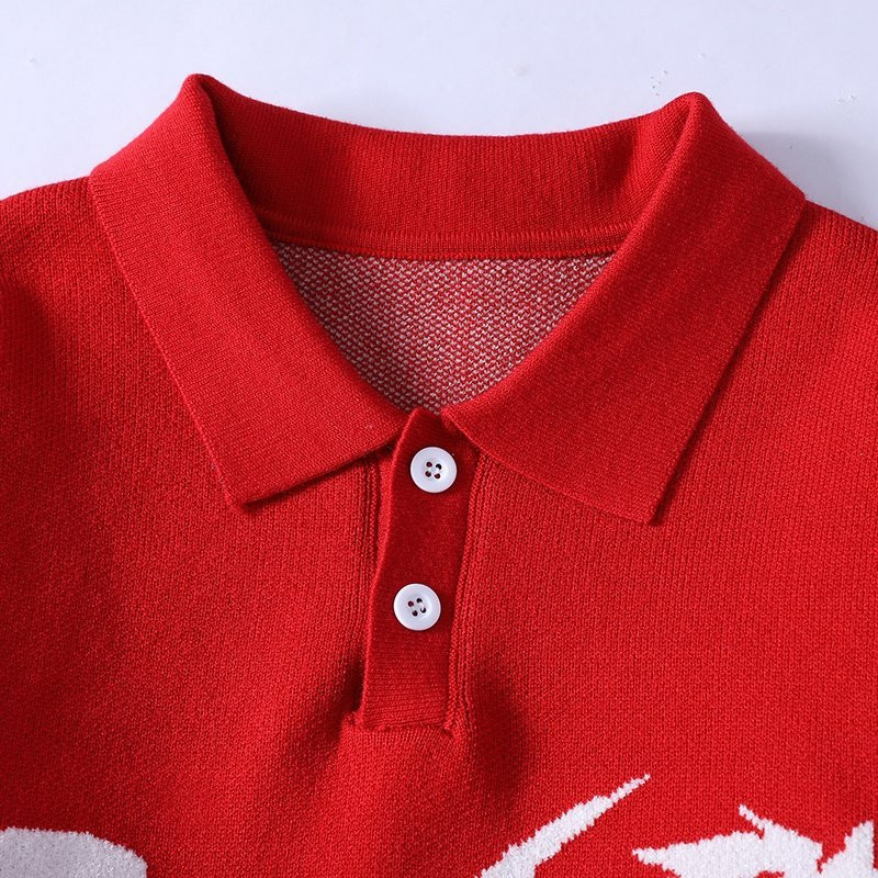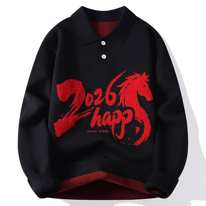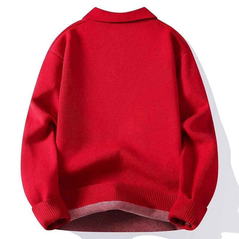 马年本命年大红色翻领毛衣男秋冬季青少年宽松休闲情侣针织衫外套