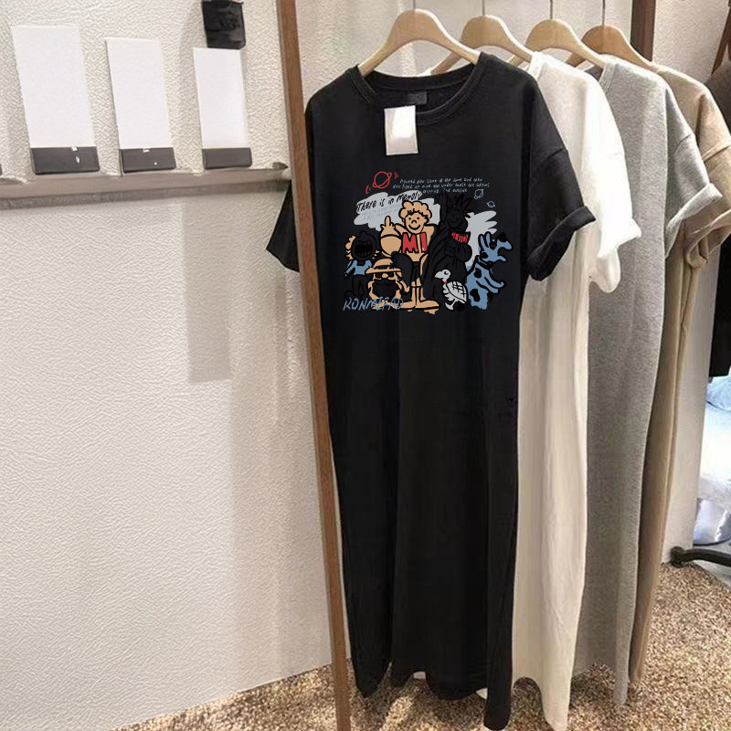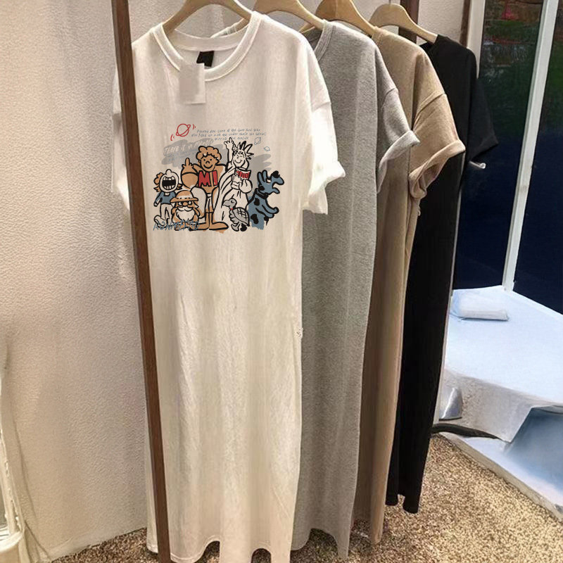 睡裙女夏大码胖mm显瘦遮肚子宽松2026新款灰色纯棉长款t恤连衣裙