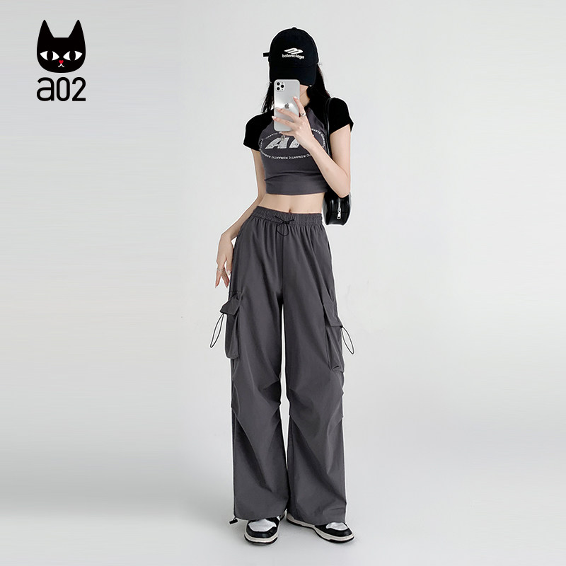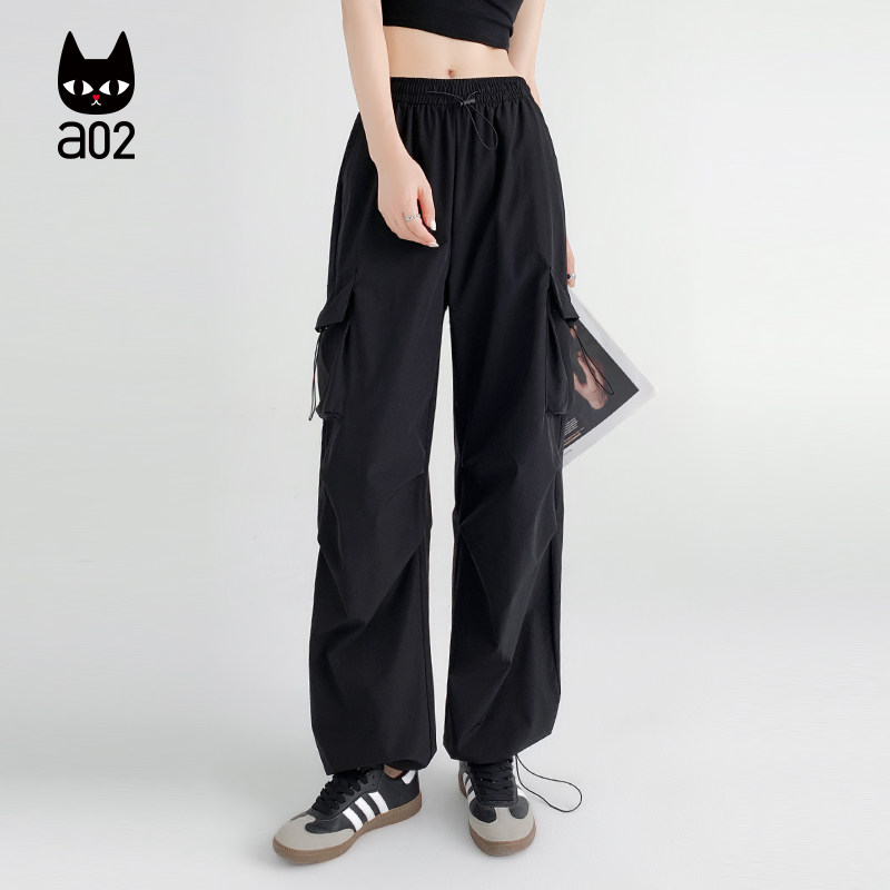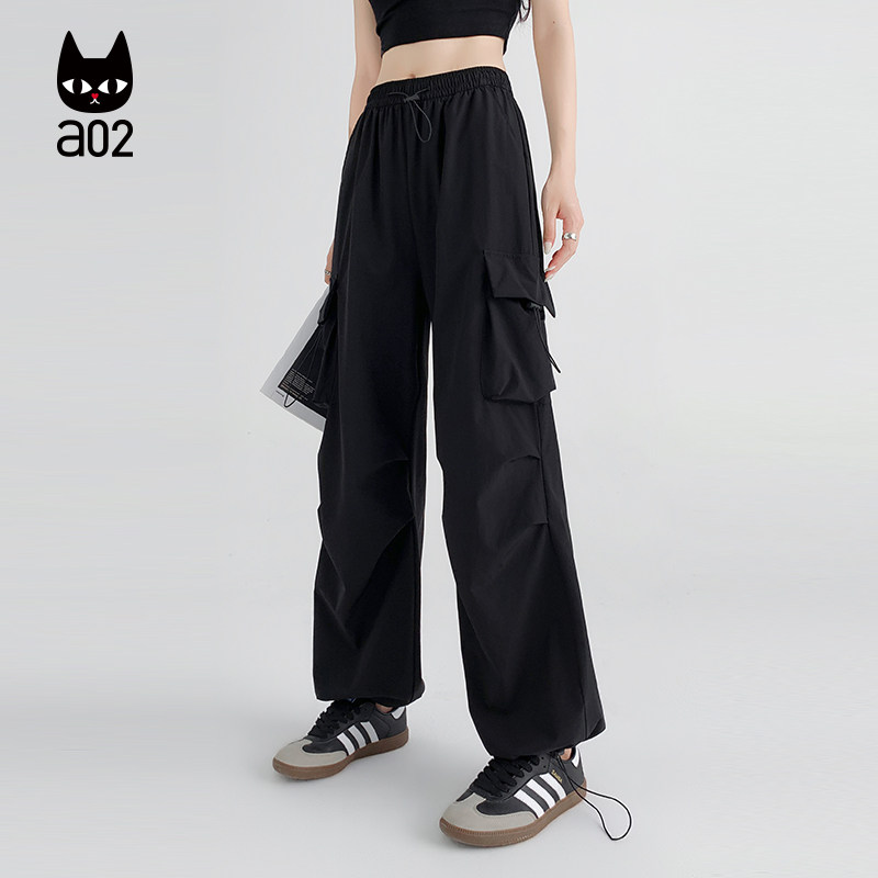 a02宽松大口袋工装裤子女款2026新款夏季休闲长裤轻薄透气阔腿裤