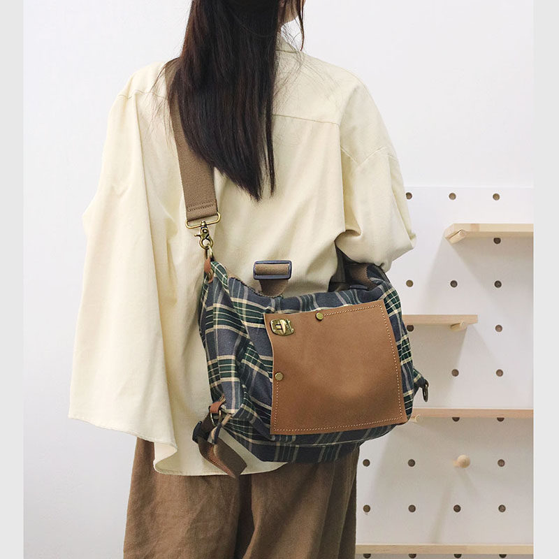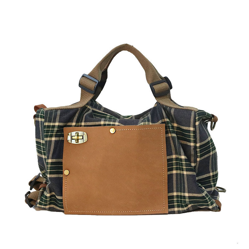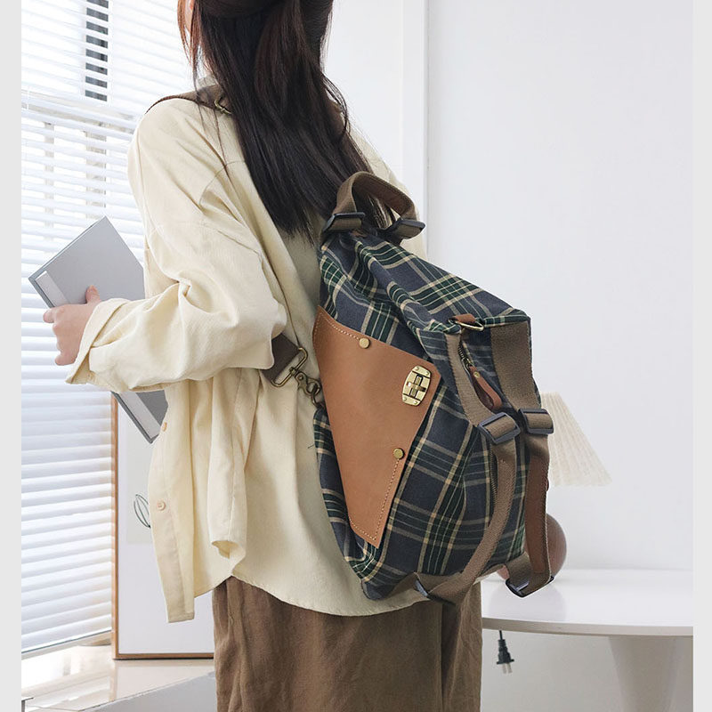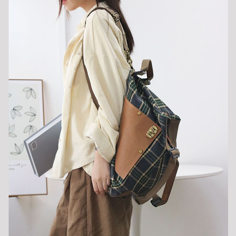 仟佰格美式复古双肩包大学生多功能手提斜挎两用女包大容量帆布包