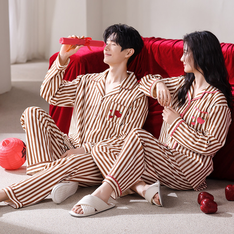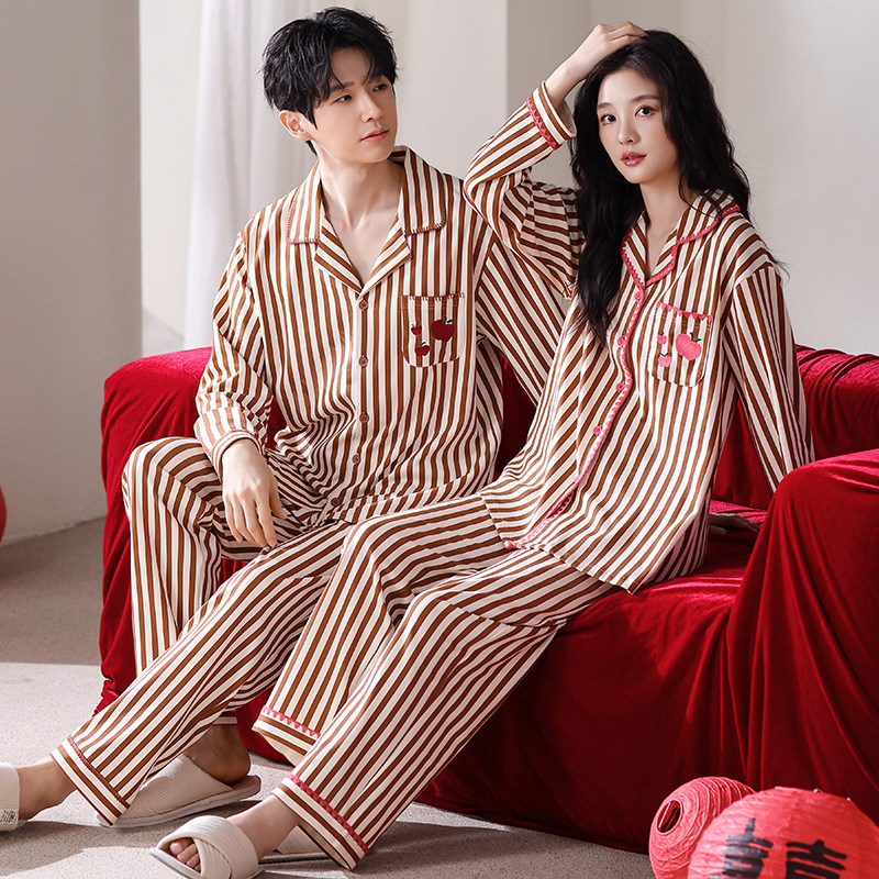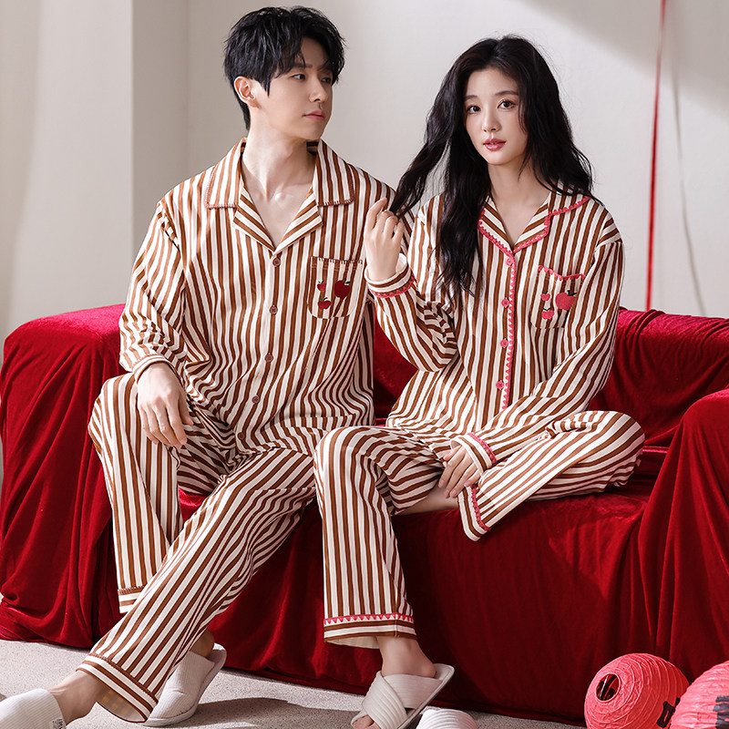 秋冬款情侣睡衣女100纯棉布料2026新款一男一女长袖加厚家居服