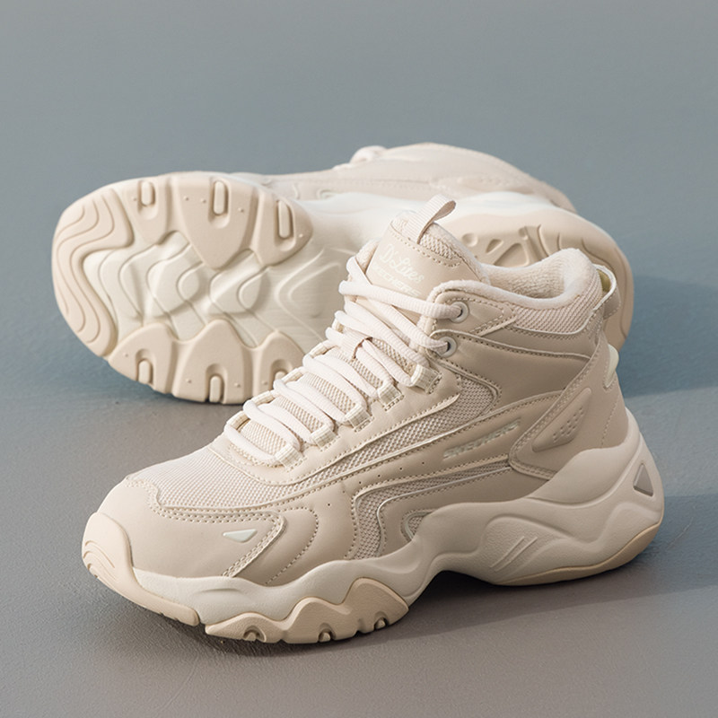 斯凯奇加绒女鞋春季新款保暖休闲鞋女款户外防滑老爹鞋高帮二棉鞋