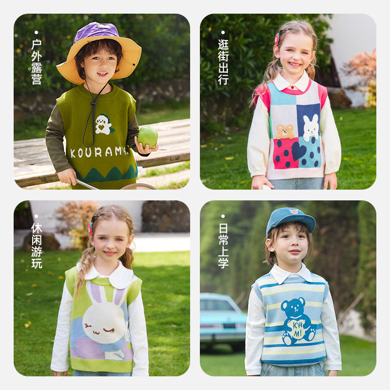 酷娃米2025秋季新款毛衣马甲男童女童卡通可爱针织衫背心宝宝上衣