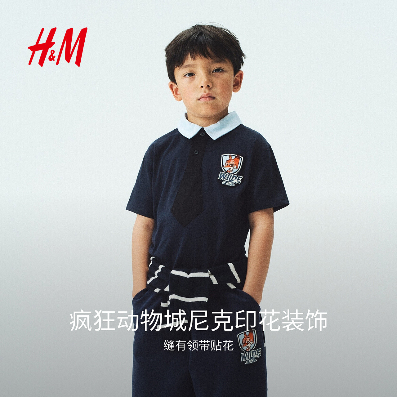 【疯狂动物城】HM童装儿童男童Polo衫春季贴花棉质短袖1346695