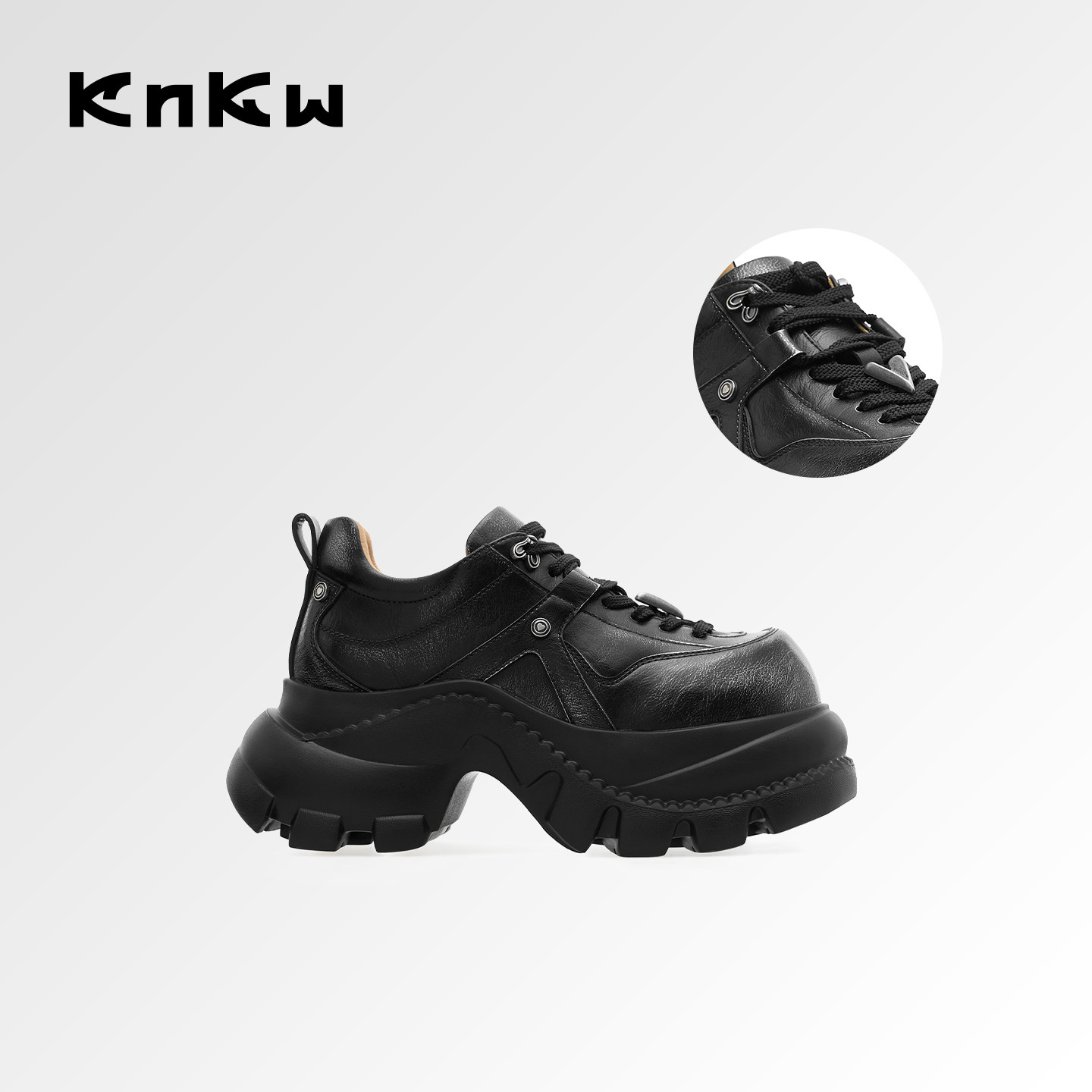 knkw2026春夏新款复古老爹小皮鞋女厚底增高女鞋休闲百搭乐福鞋