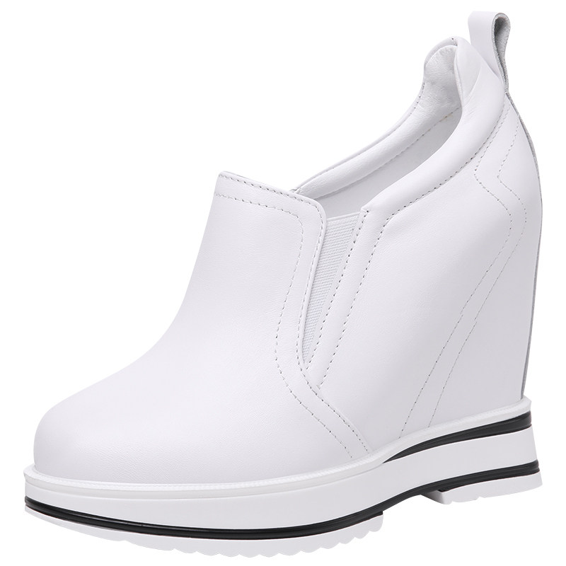 12CM内增高小白鞋女真皮春秋厚底休闲坡跟单鞋简约白色一脚蹬女鞋