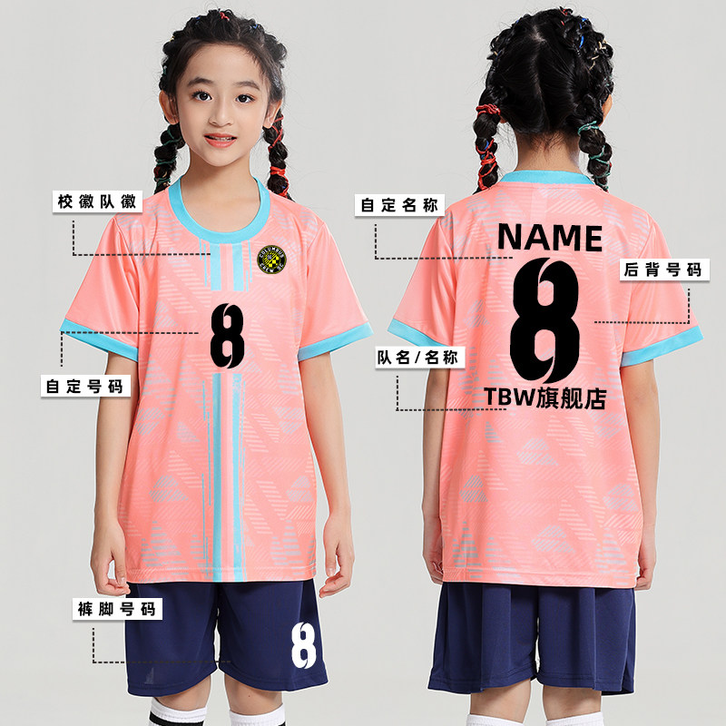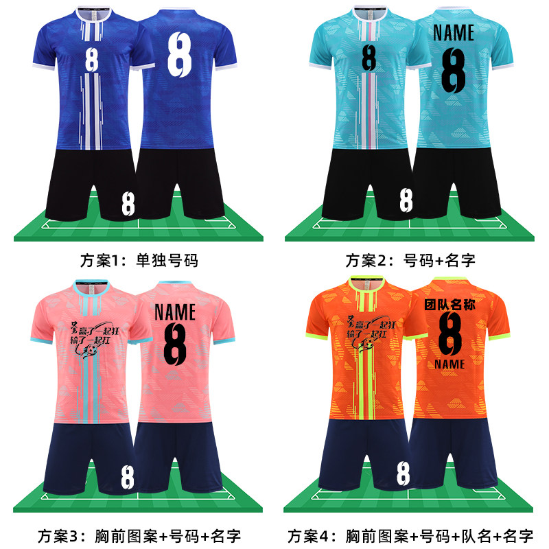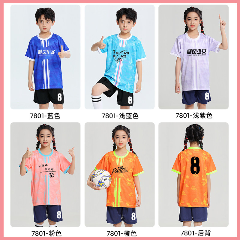 个性蓝色足球服儿童足球衣中学生比赛足球训练套装小孩运动套装