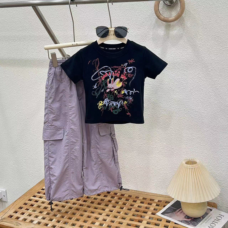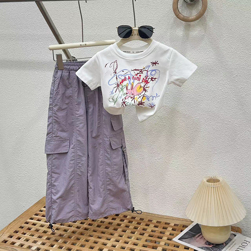 女童夏装时髦洋气休闲工装裤套装2026夏季新款街舞爵士薄款长裤子