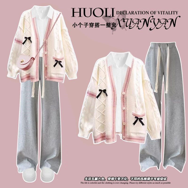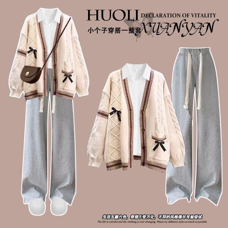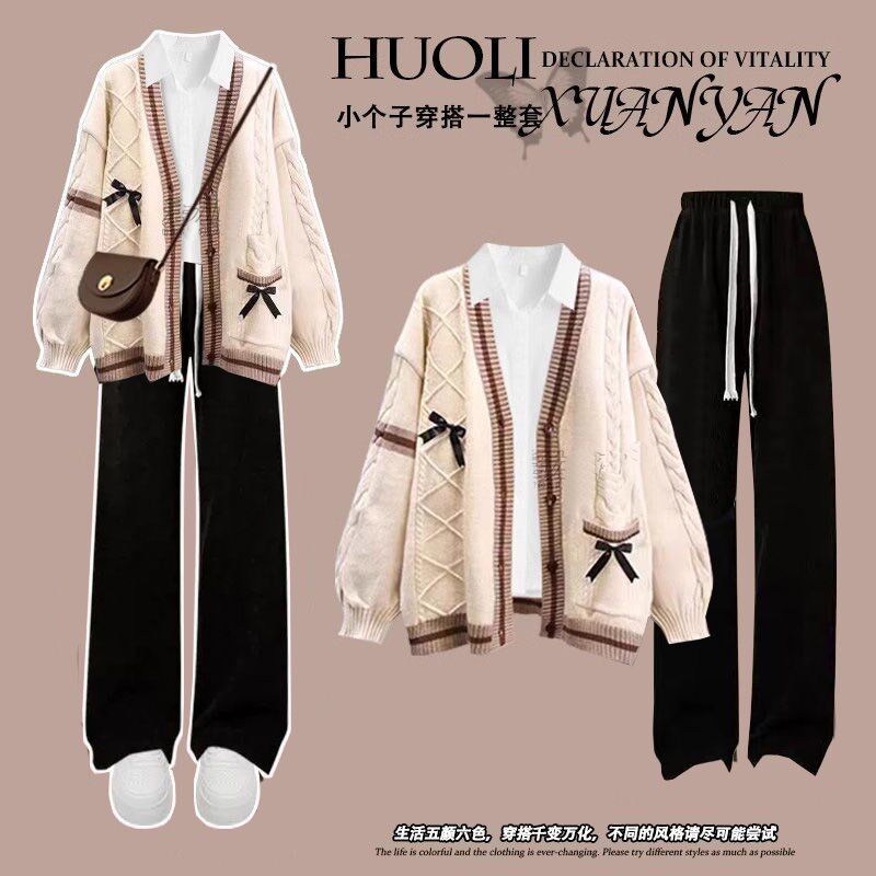 高中学生毛衣外套三件套装13少女孩时尚15岁初中生秋冬季14牛仔裤