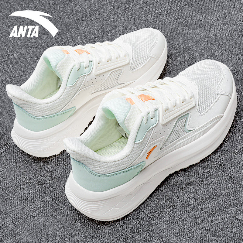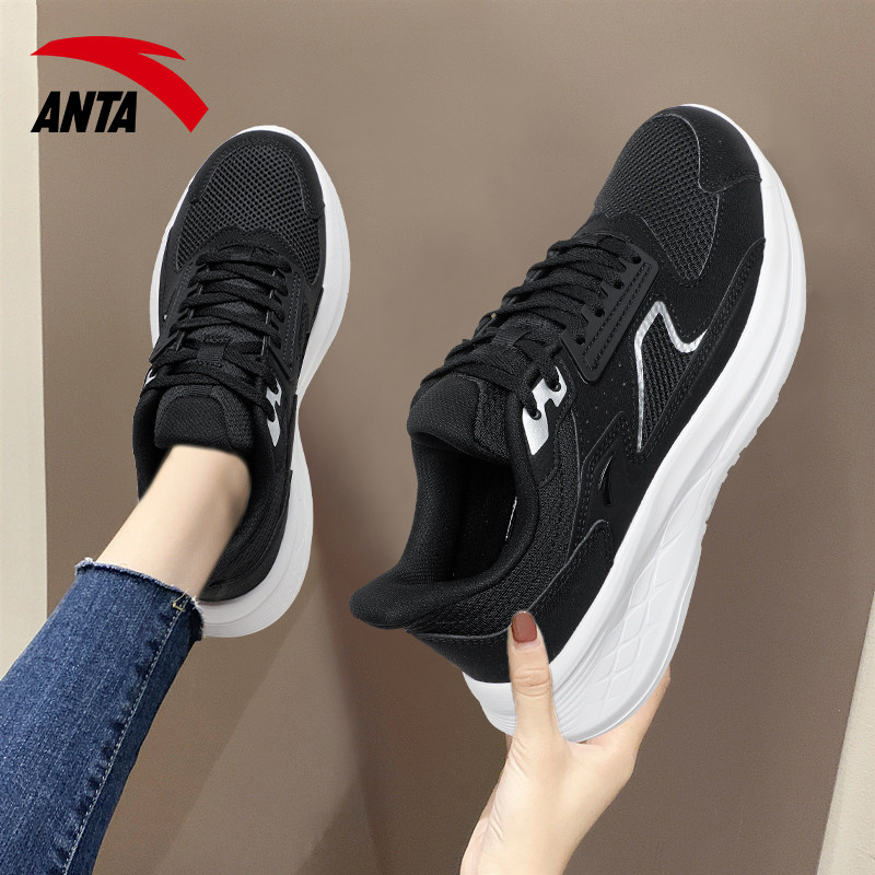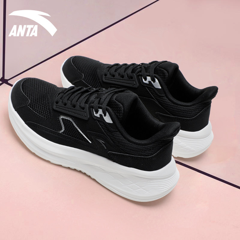 安踏黑色运动鞋女鞋春秋轻便舒适软底减震网面学生百搭休闲跑步鞋