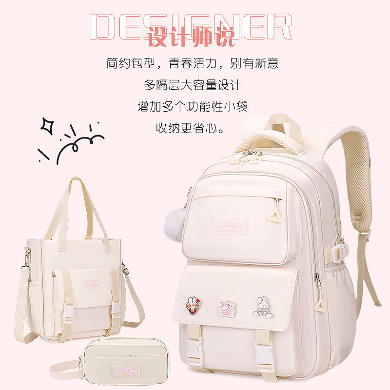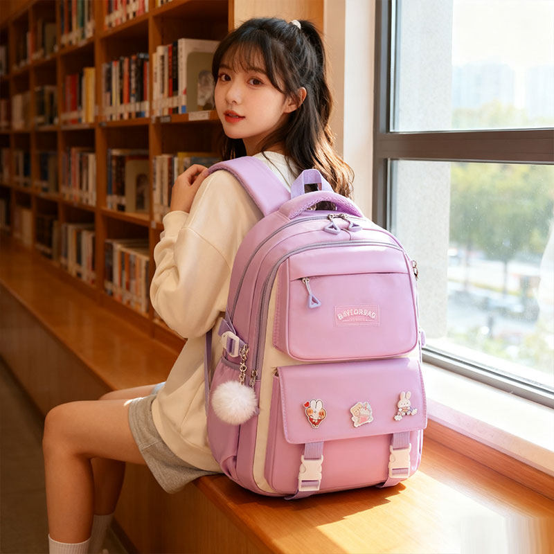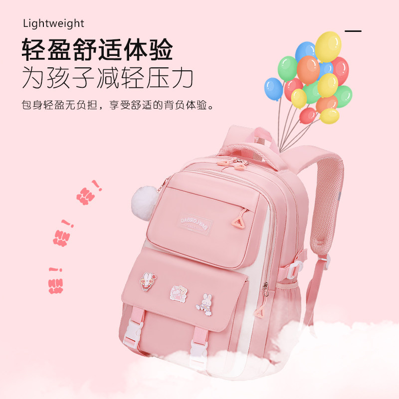 可爱粉色小学生书包女生大容量初高中生护脊减负双肩包时尚简约包