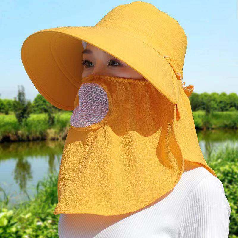 大檐面纱帽子夏天女款遮阳帽披肩帽防尘帽户外骑车帽饰百搭采茶帽