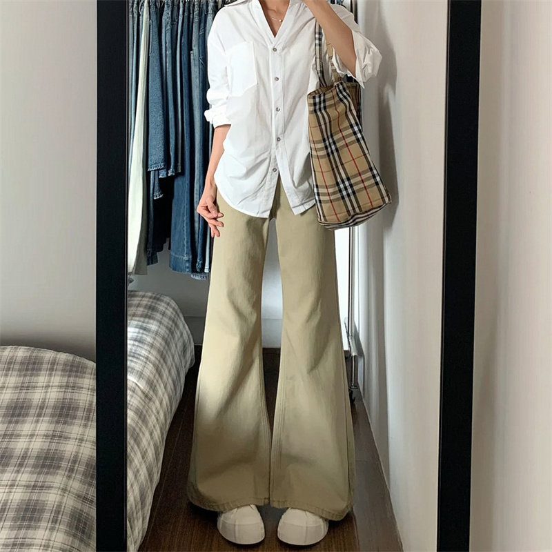 白色微喇牛仔裤女2026春季新款低腰不贴腿宽松辣妹显瘦直筒喇叭裤