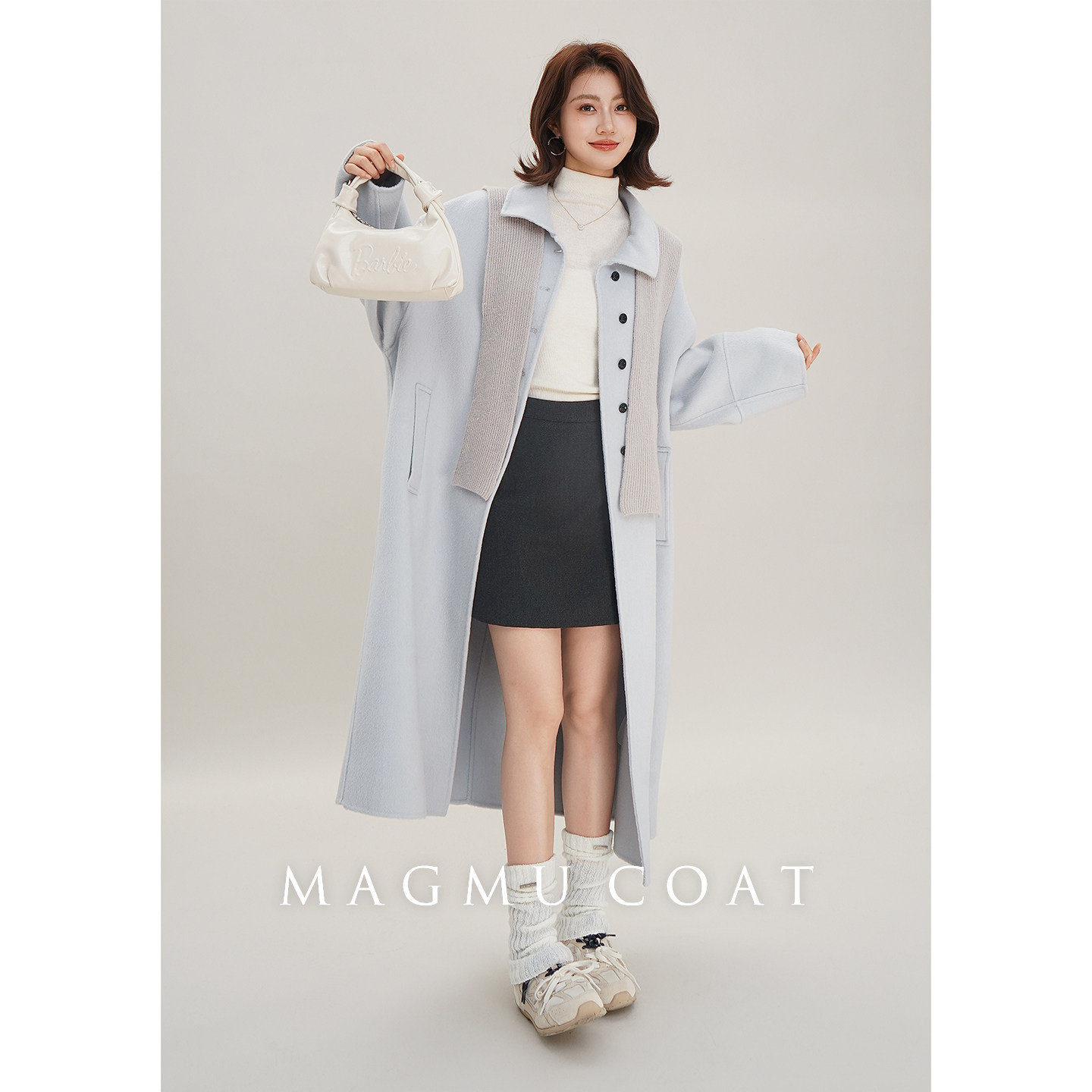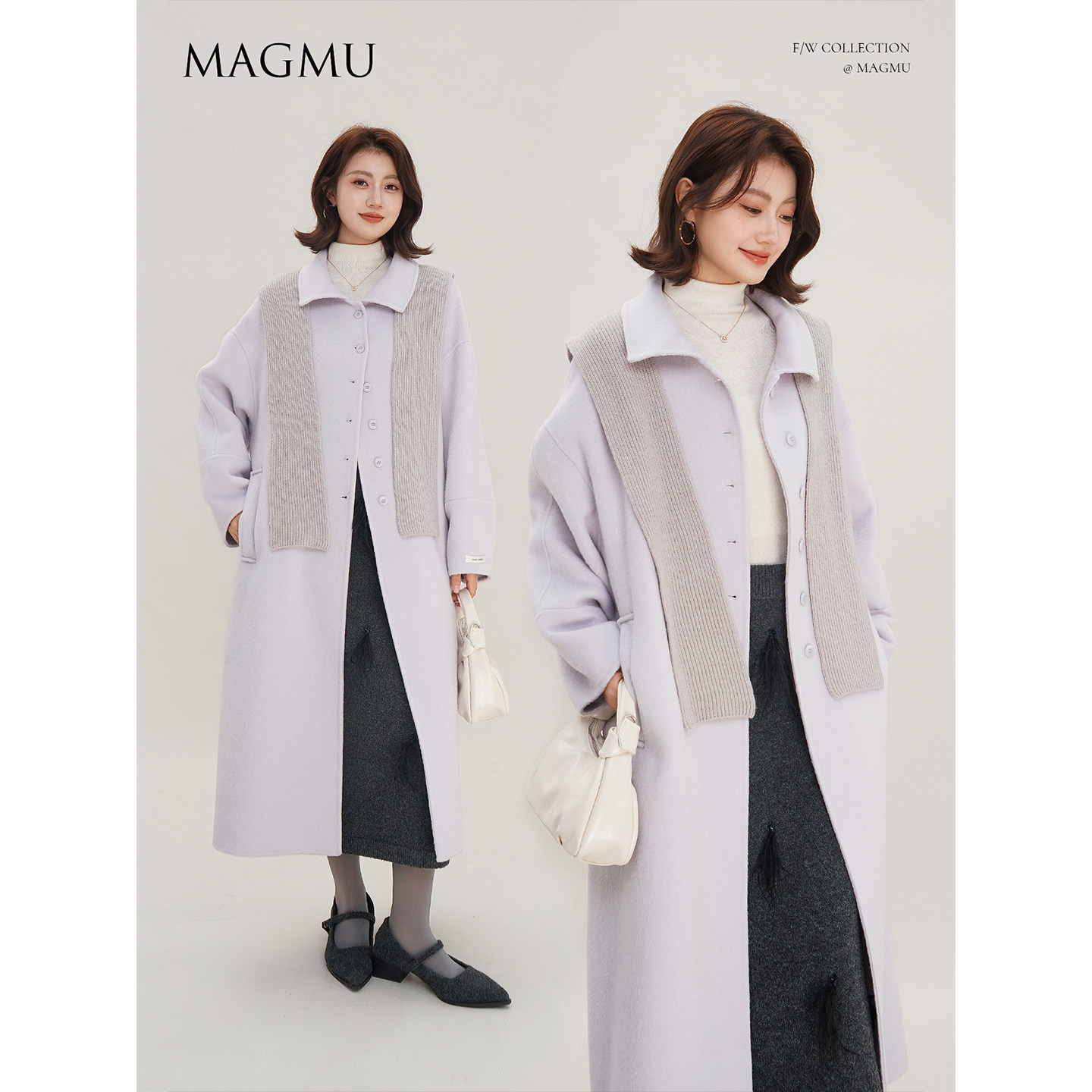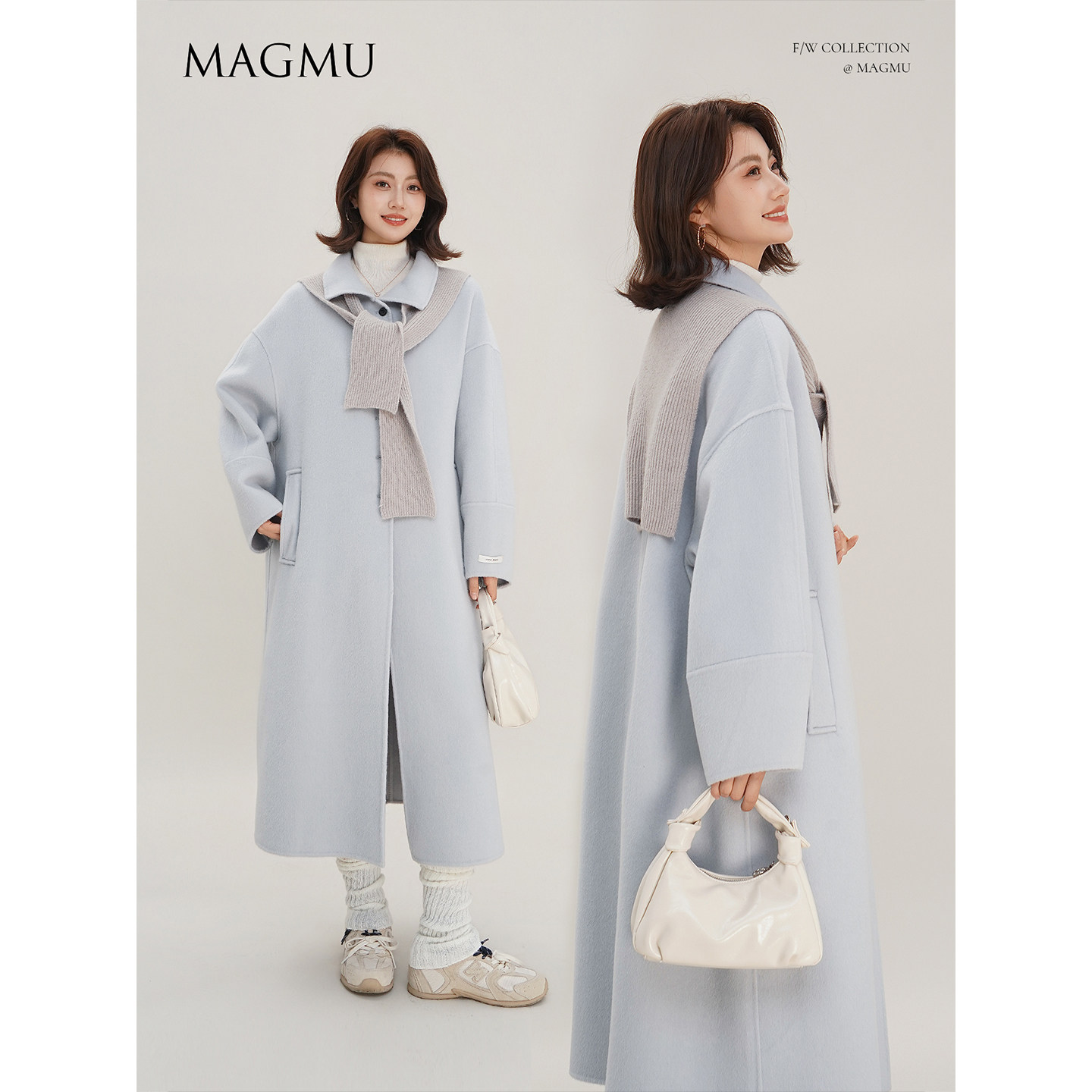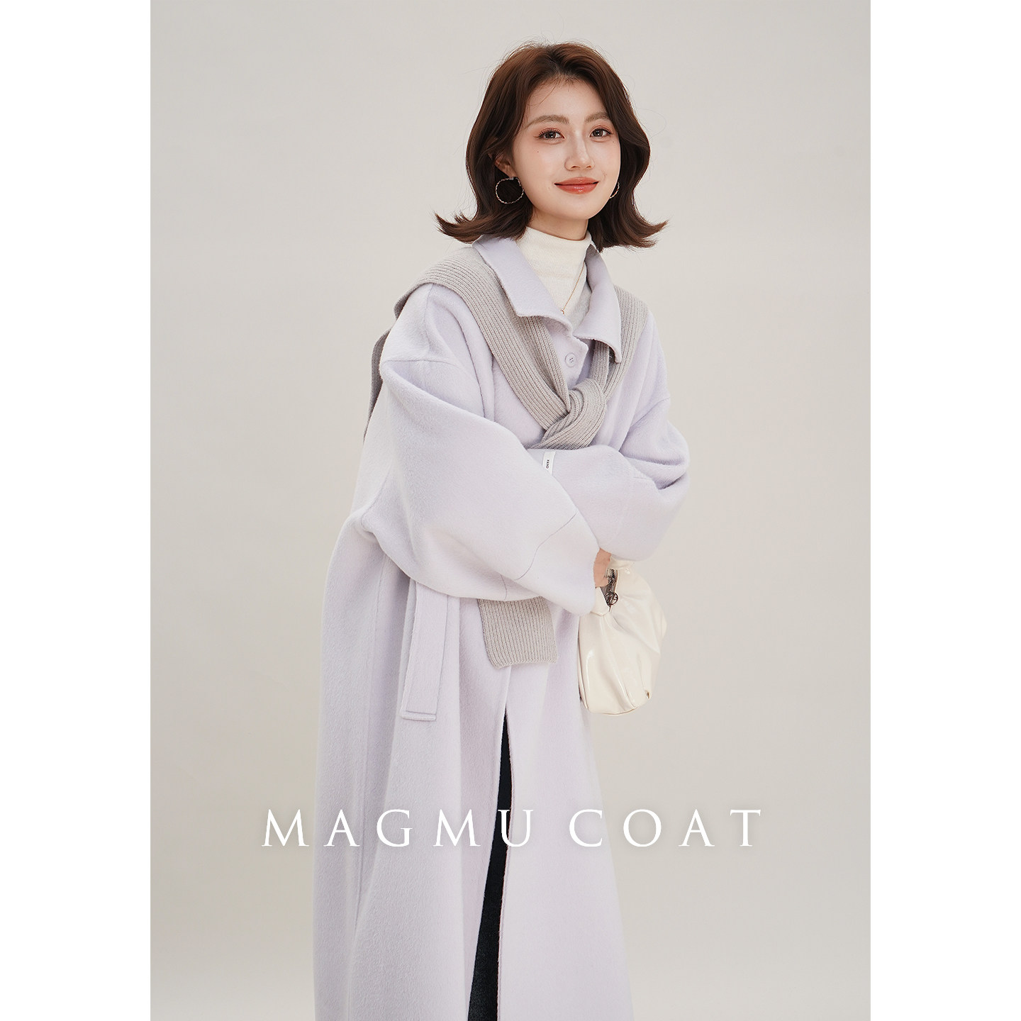 麦格牧【奶昔】100%绵羊毛 双面呢大衣小个子秋冬中长款毛呢外套