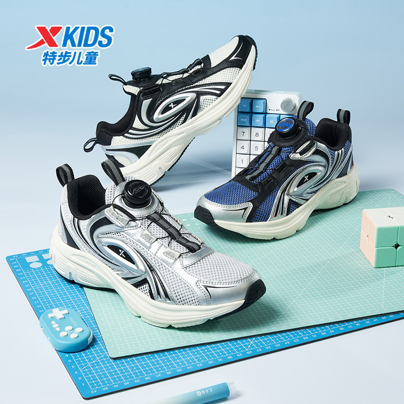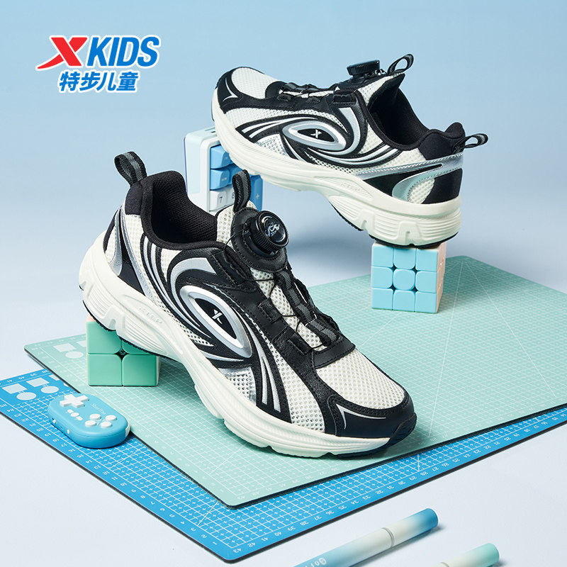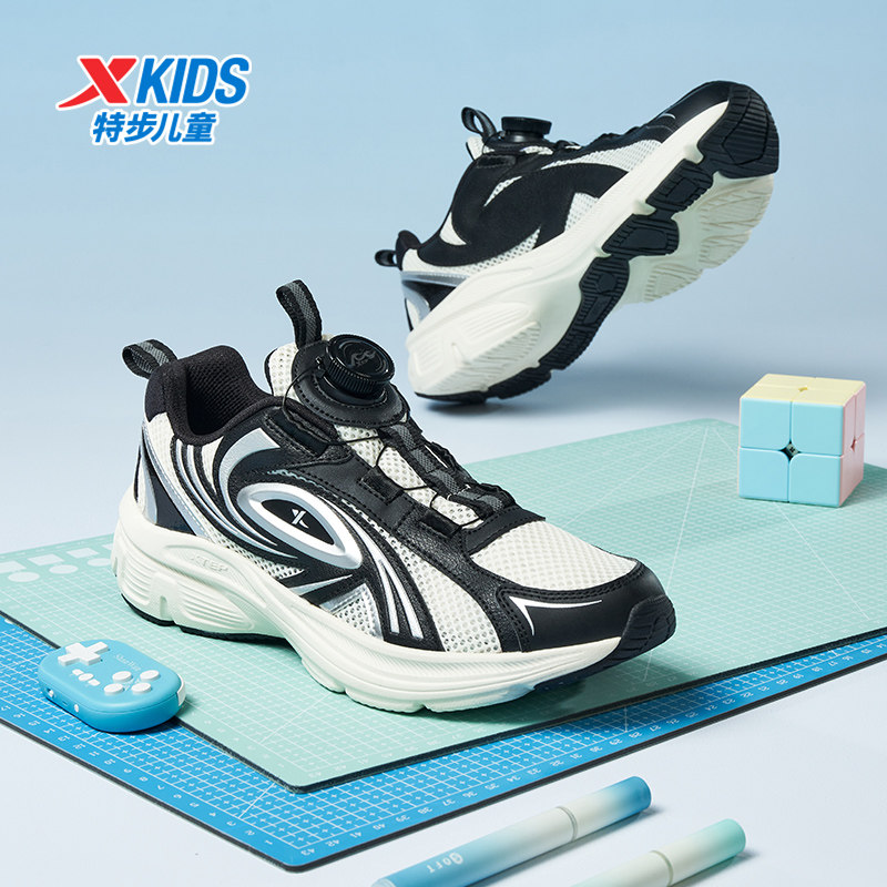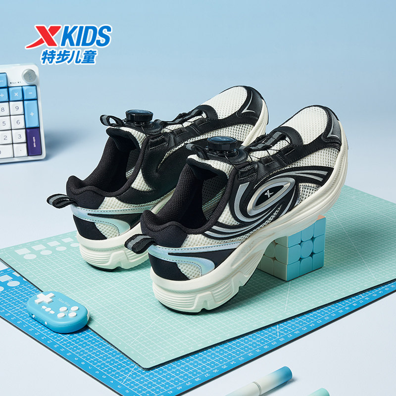 特步童鞋中大童春季款网面透气儿童运动鞋子男童耐磨旋钮扣休闲鞋