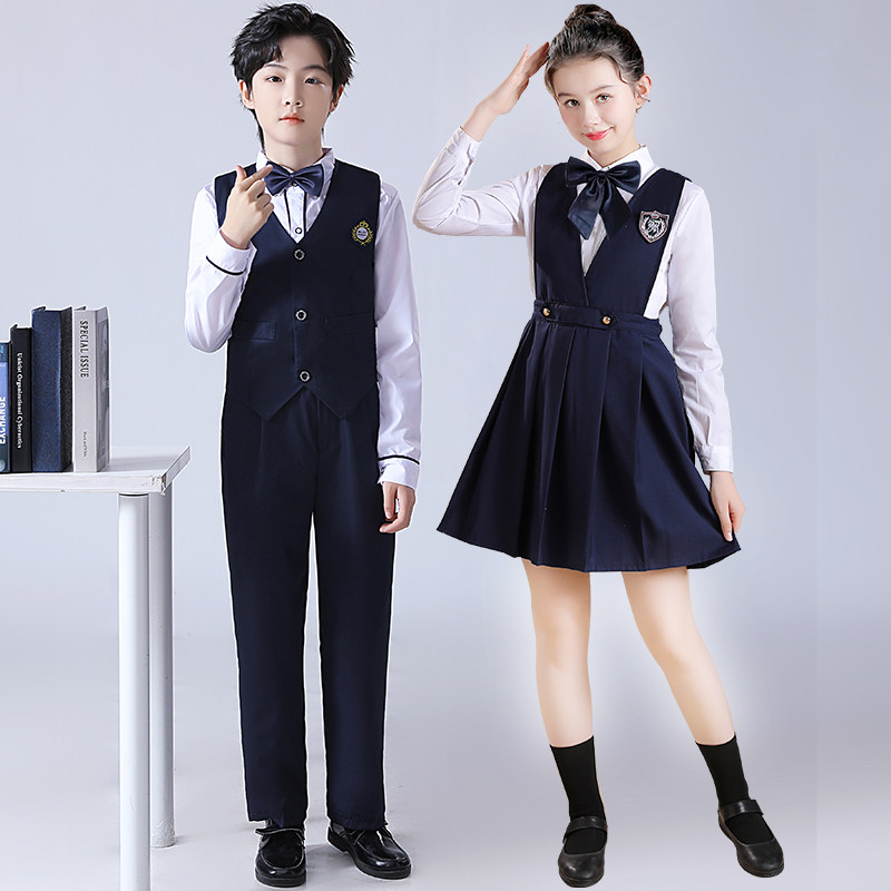 元旦儿童合唱演出服小学生朗诵比赛服装学院风女童套装演讲礼服男