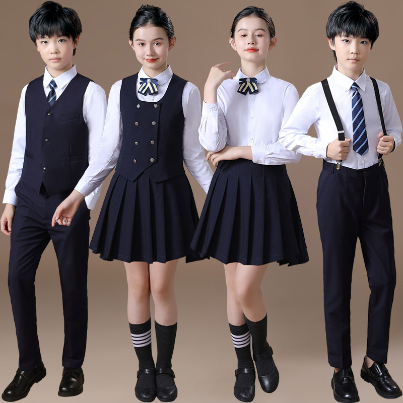 儿童大合唱演出服中小学生朗诵比赛服装学院风女童套装演讲礼服男
