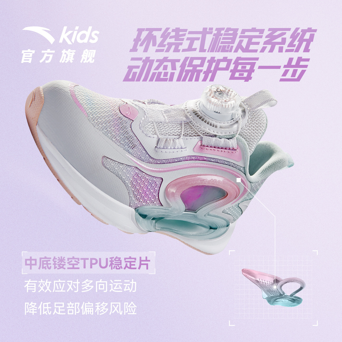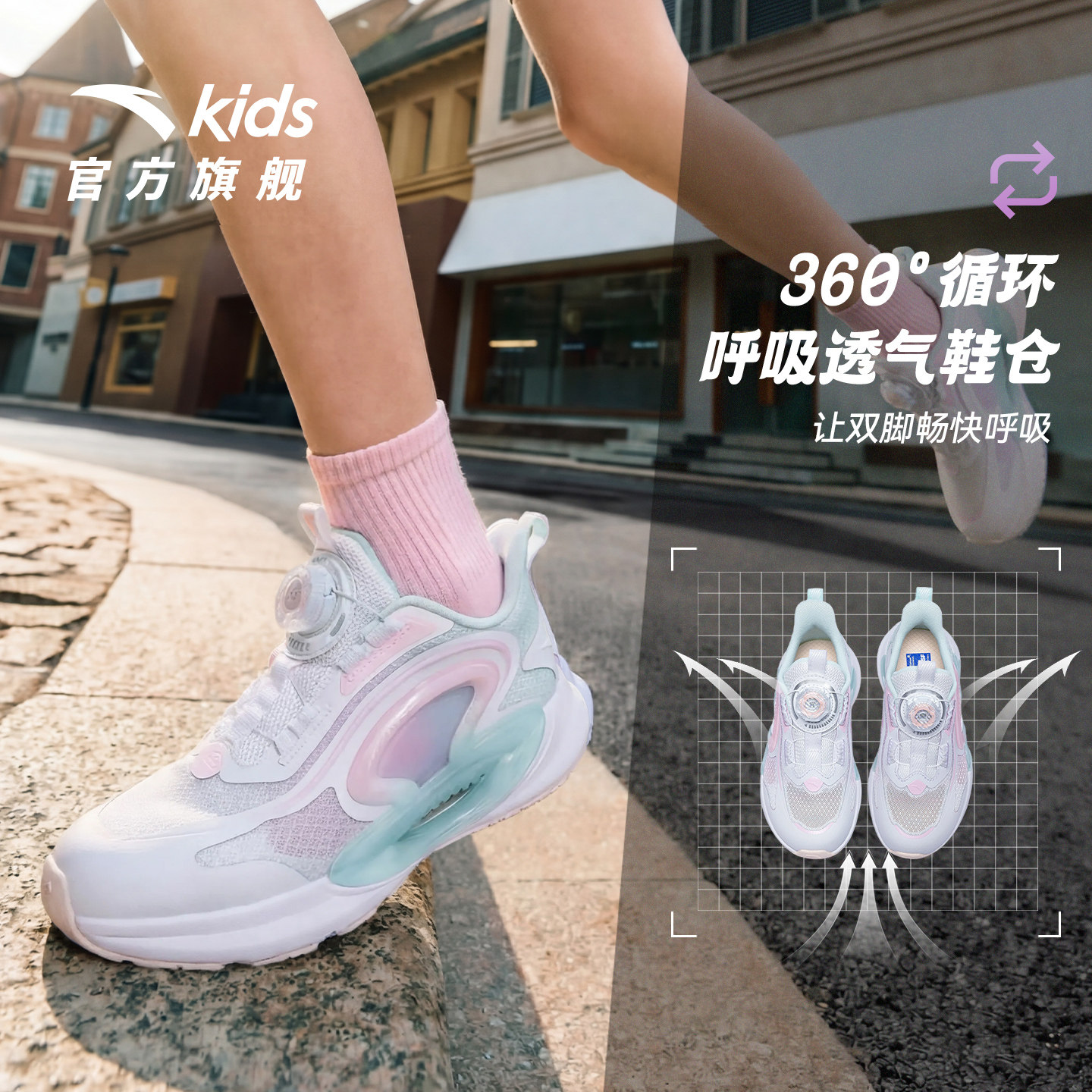 安踏儿童逐月跑鞋2026夏季新款透气女小童旋钮运动跑步鞋童鞋休闲