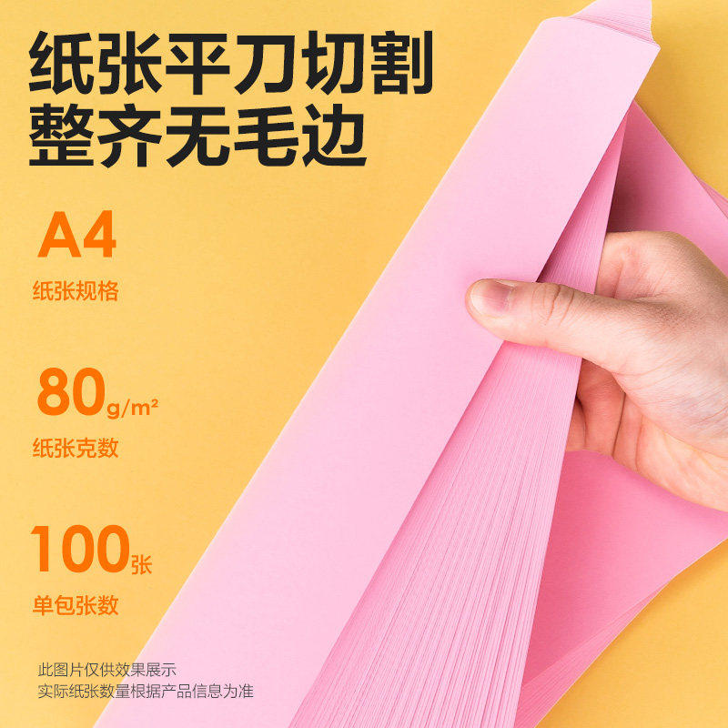 得力7757彩色A4纸80克粉色彩纸彩色纸打印桔黄色a4彩色复印纸黄色红色绿色蓝色深浅深色浅色100张加厚打印纸