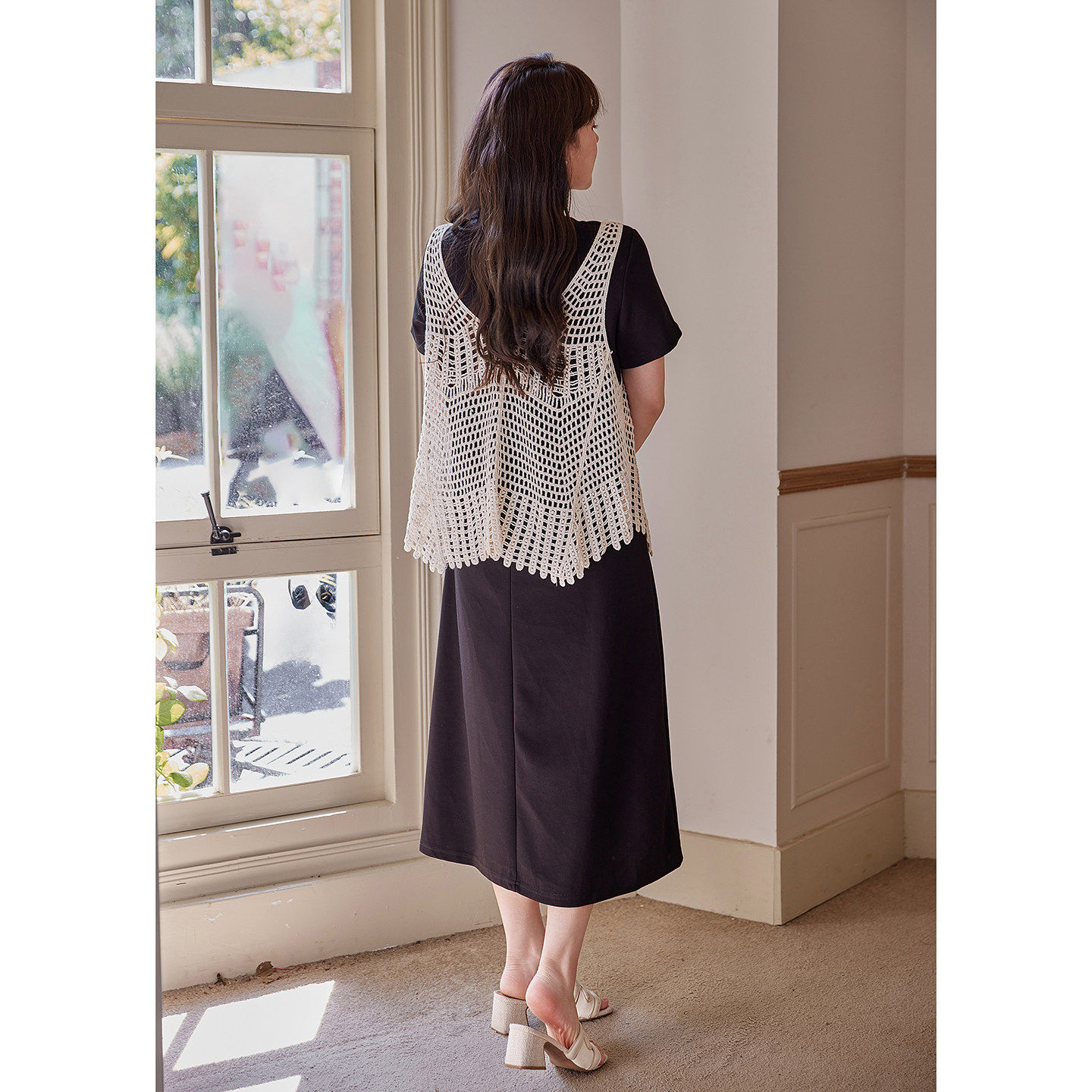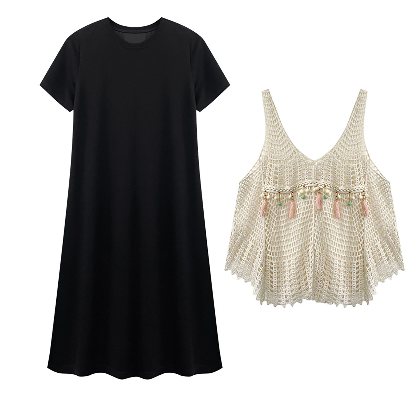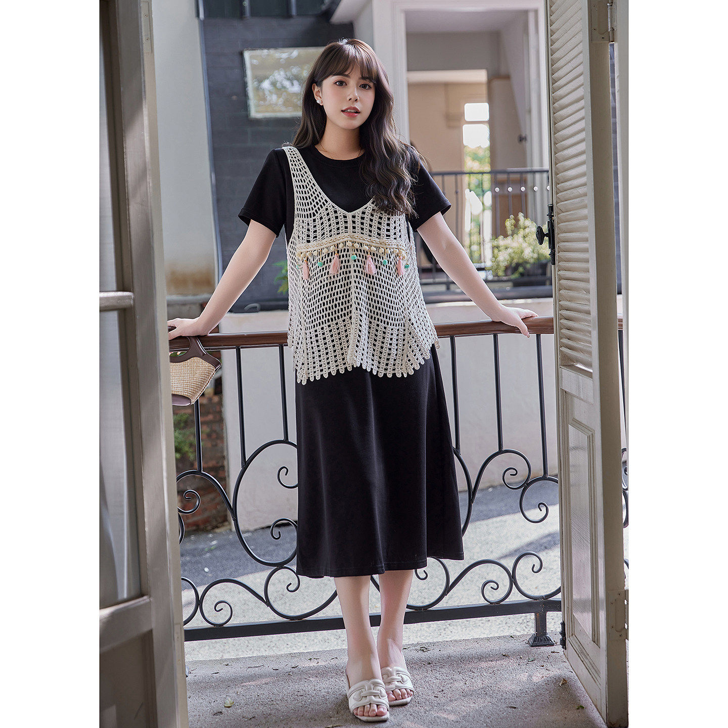 大码女装2026夏装胖mm显瘦真两件拼接解流苏马甲连衣裙两件套装