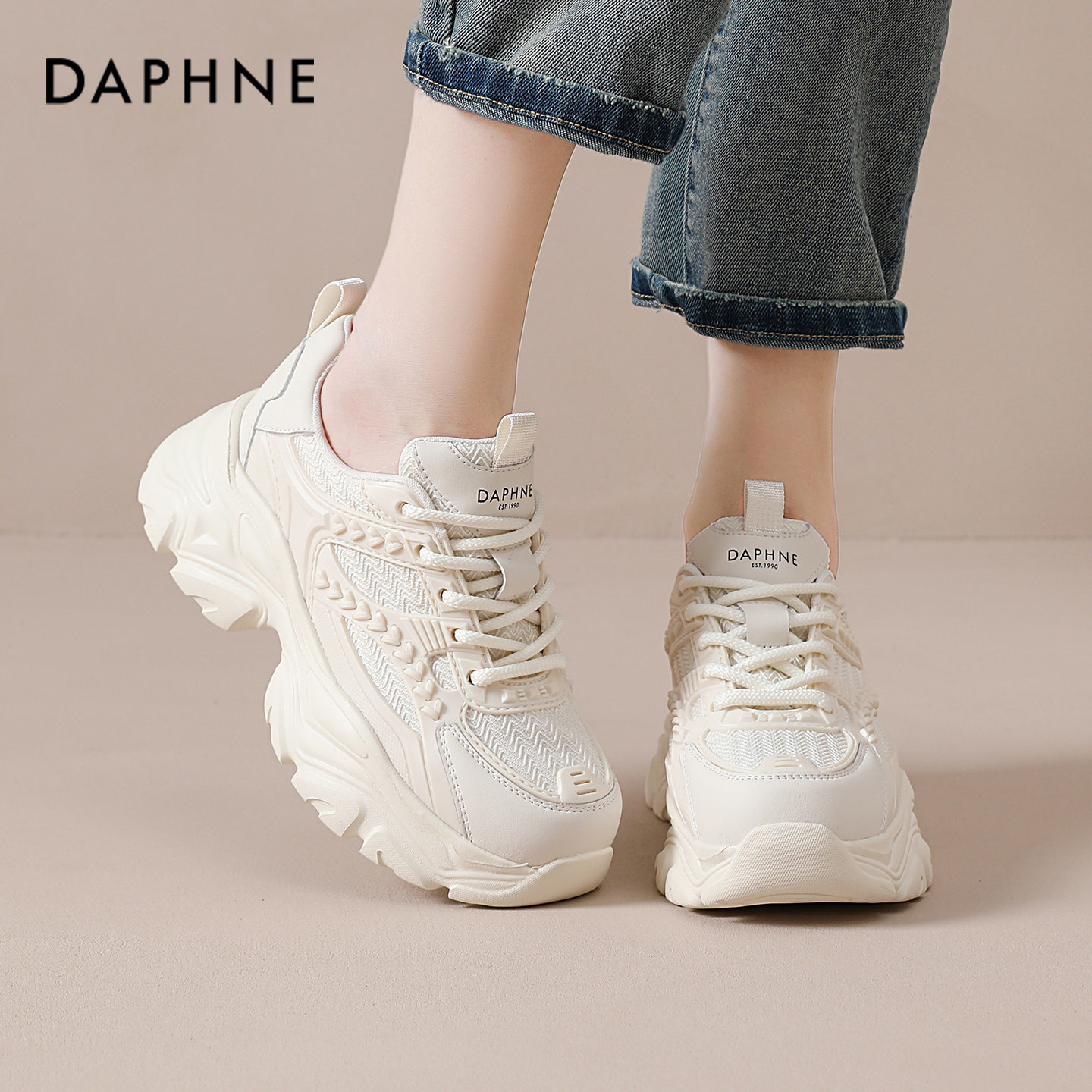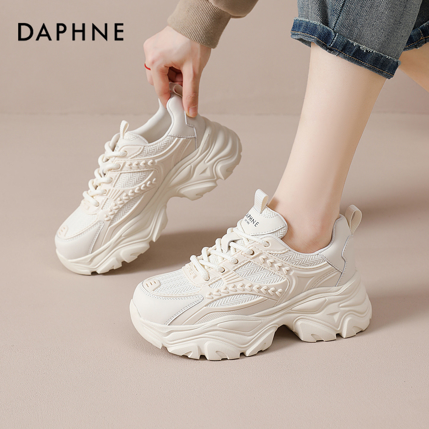达芙妮小白鞋女款春季2026新款网面休闲运动透气软底不累脚老爹鞋